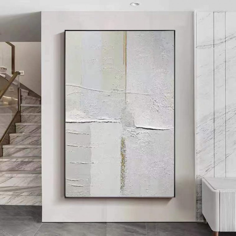 Hand-painted oil painting large landing Nordic light luxury porch sofa wabi-sabi style three-dimensional decorative painting abstract minimalist hanging painting
