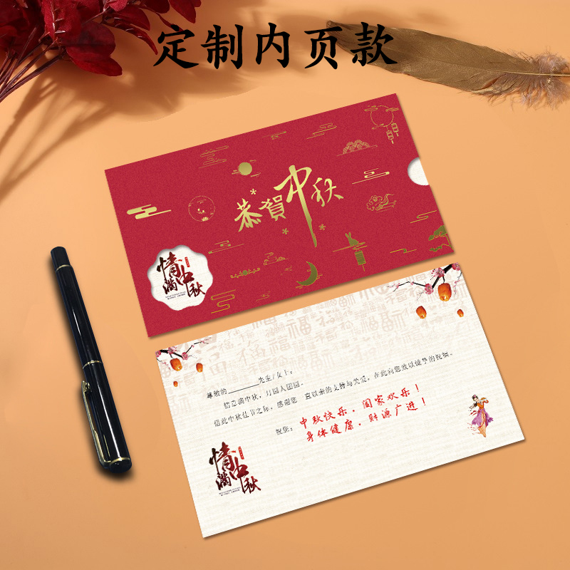 Mid-autumn greeting card creative custom-made envelope inner page thickened bronzing printing logo high-end business
