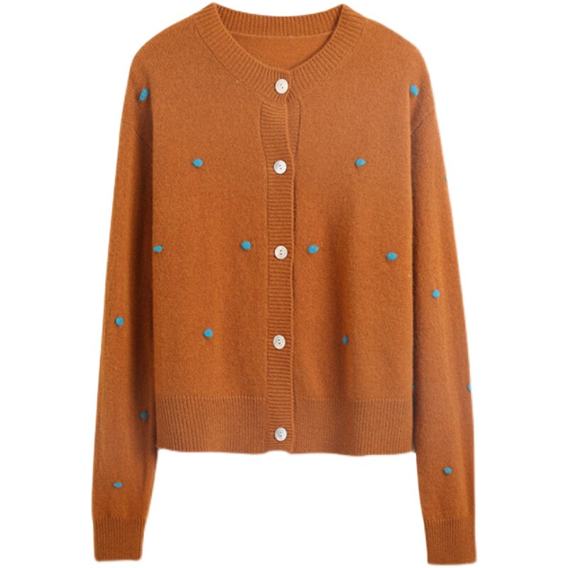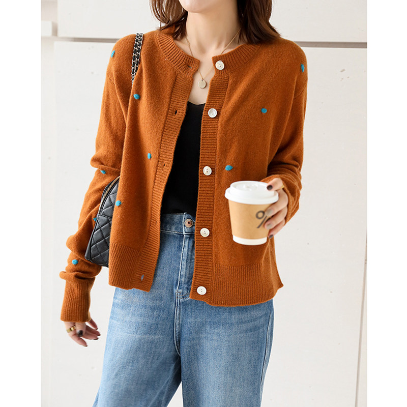 Day Ensemble Light Extravaganza Early Autumn New Monds 100 Hitch Round Collar Design Sensation Collision Color Embroidered Sheep Sweatshirt Knitted Cardigan Jacket Woman