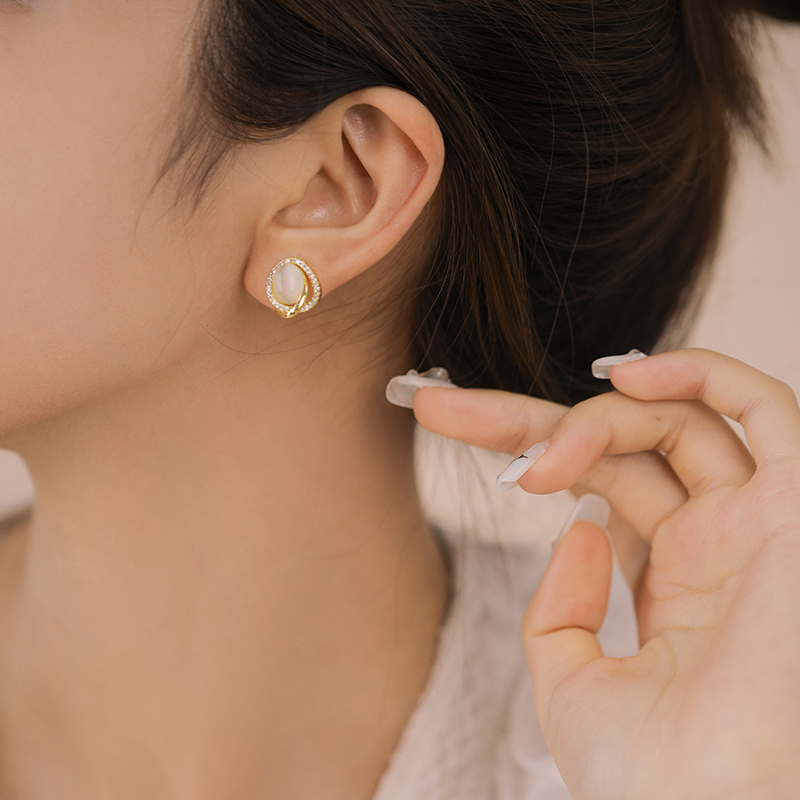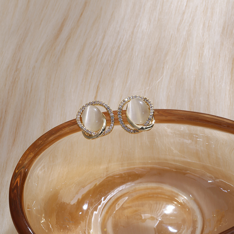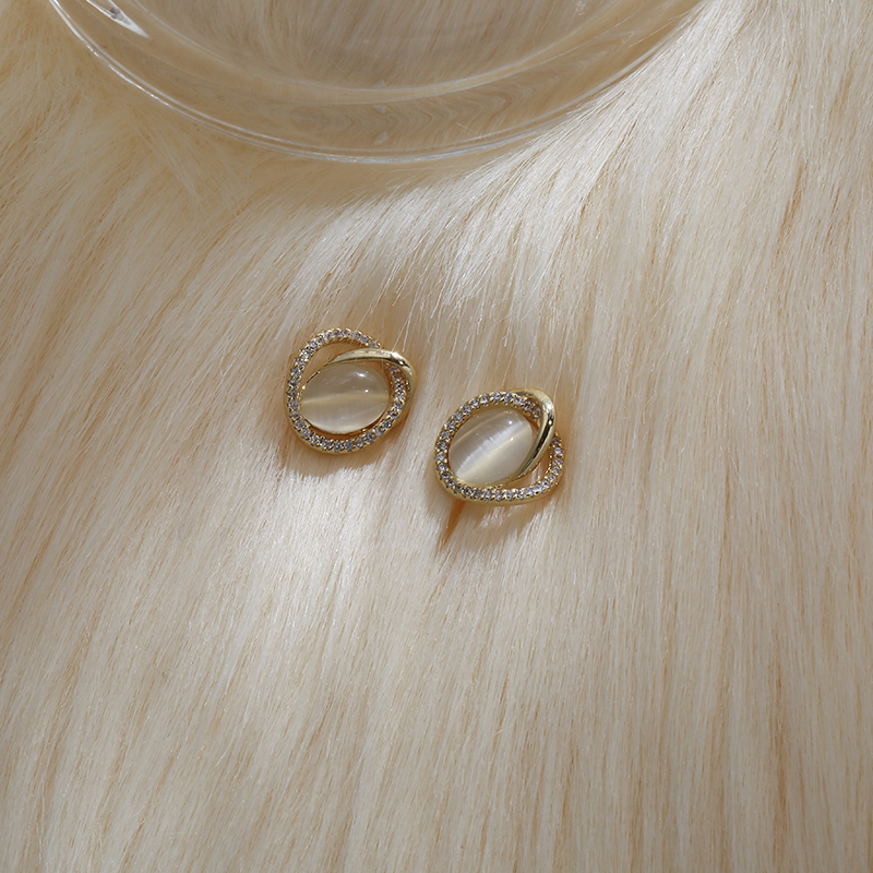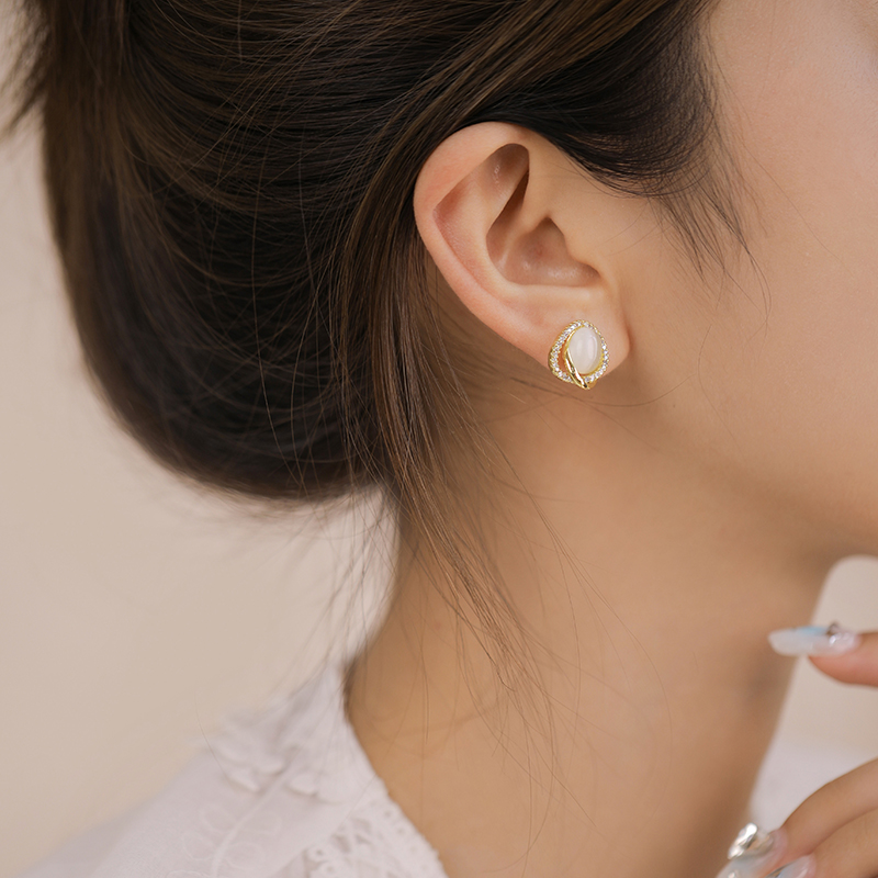 Opal earrings high-end sense of small and exquisite light luxury small ear needles female temperament ladies new micro-inlaid zircon earrings