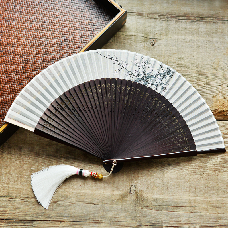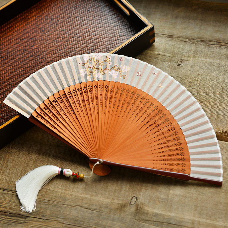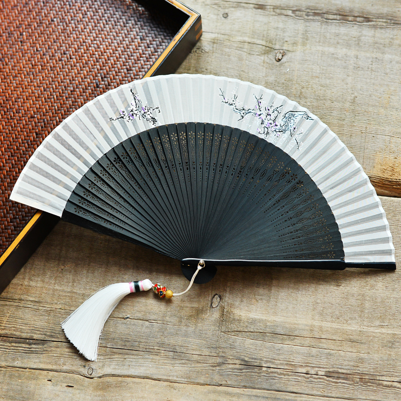 Middle Country Wind Vegan Blue Bone Vegan Fan Ancient Wind Bamboo Folding Fan Summer Lady Carry-on-Style Hanfu Qipao Walk Show