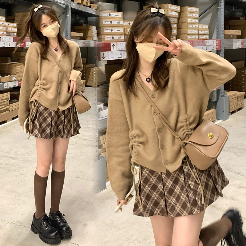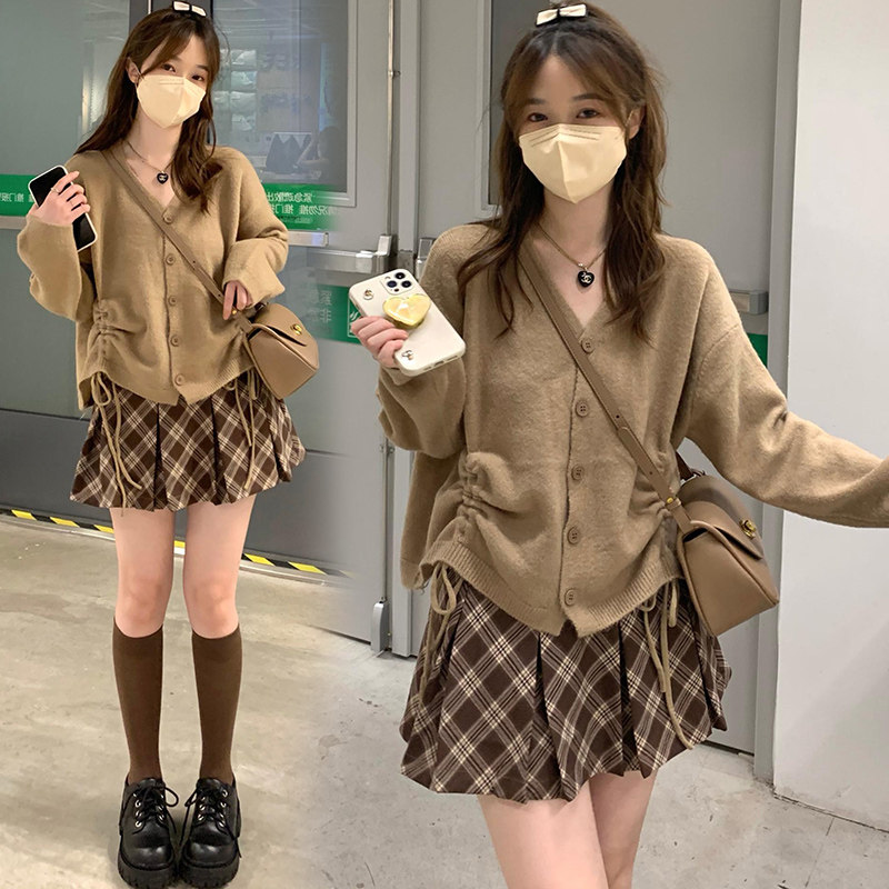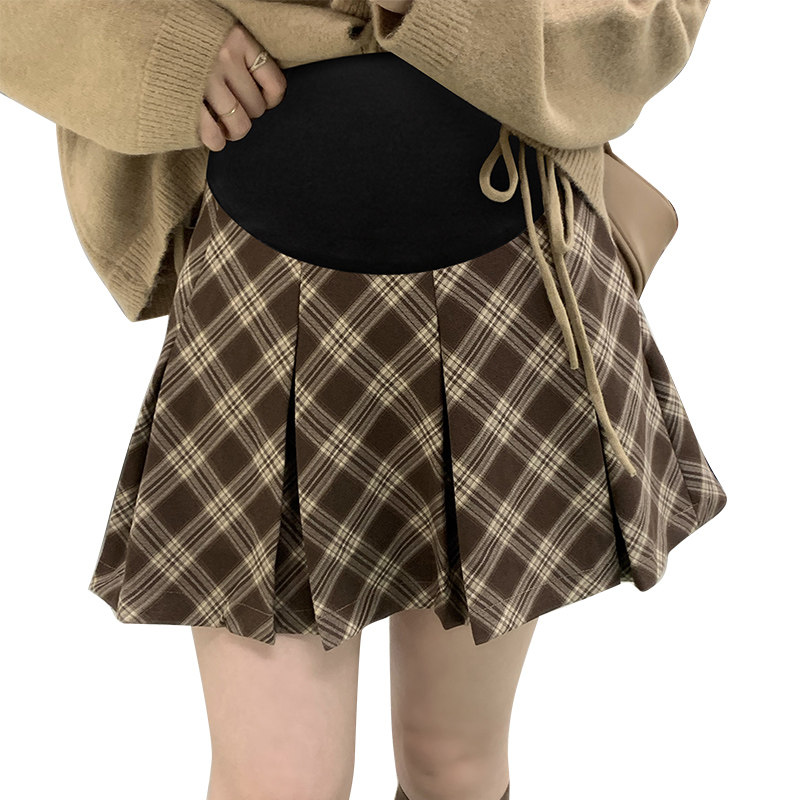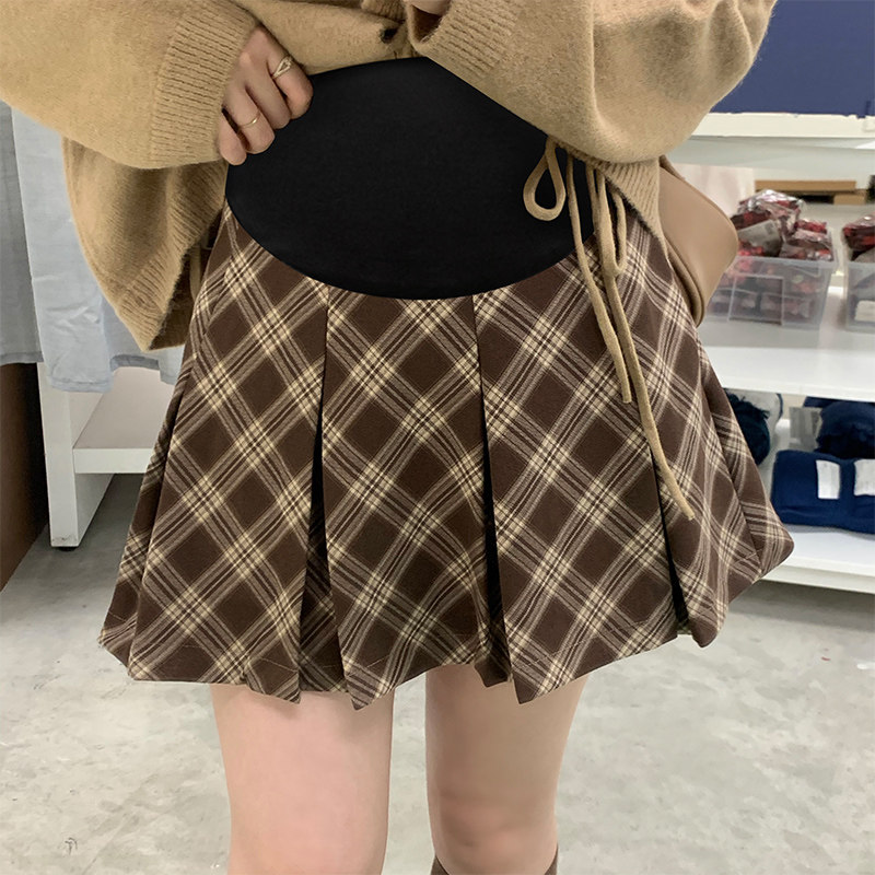 Pregnant woman half-body dress Women fall winter hair short skirt 2021 new outwear plaid dress Slim Fit a Hip Skirt Tide
