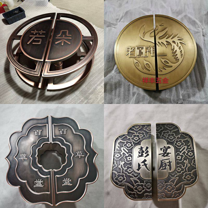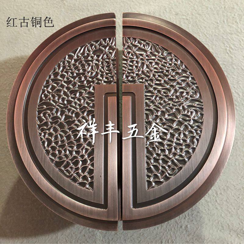 Chinese style gate handle imitation ancient copper custom semi-circular glass door handle engraving guest room hotel face wooden door handle