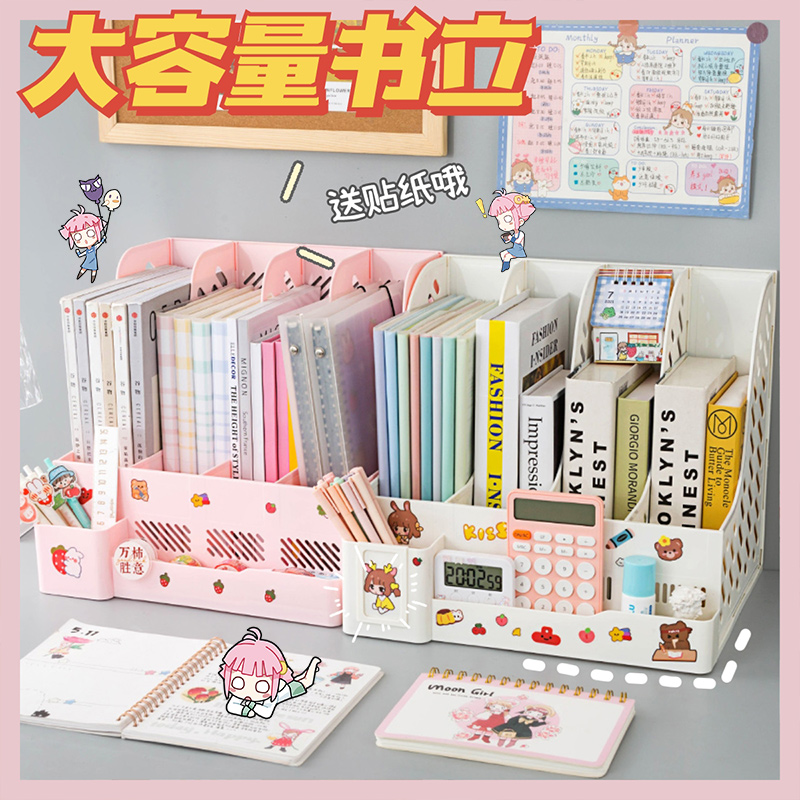 ins wind belt pen holder thickened cute book stand desktop storage children's book stand students junior high school high school large-capacity desk organizer artifact storage box book clipper bookend dormitory rack