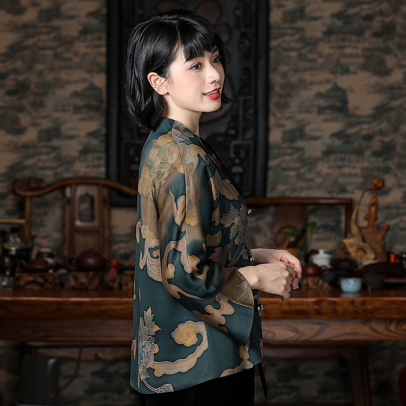 40 mmi heavy satin hand-painted colorful fragrant cloud yarn blouse blouse mulberry silk retro short coat Chinese genuine silk improved tangy