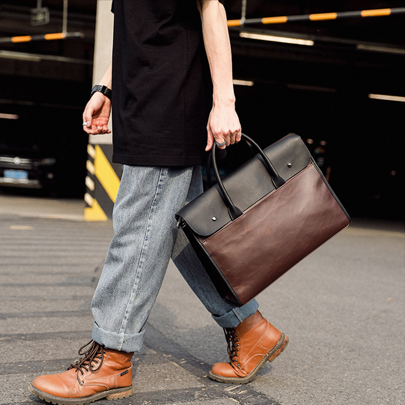 Business handbag retro men's bag leather Korean version shoulder bag diagonal bag horizontal computer bag briefcase large capacity