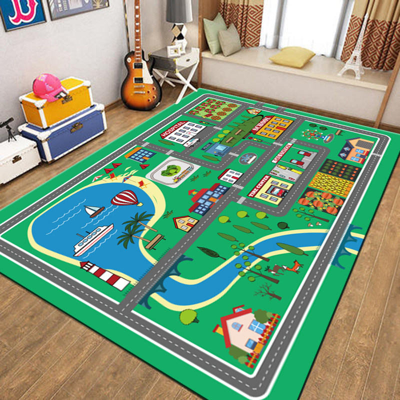 City Transport Parking Lots Ground Mat Cartoon Road Carpets Children Car Tracks Crawl Mats Early Teach Gaming Blanket