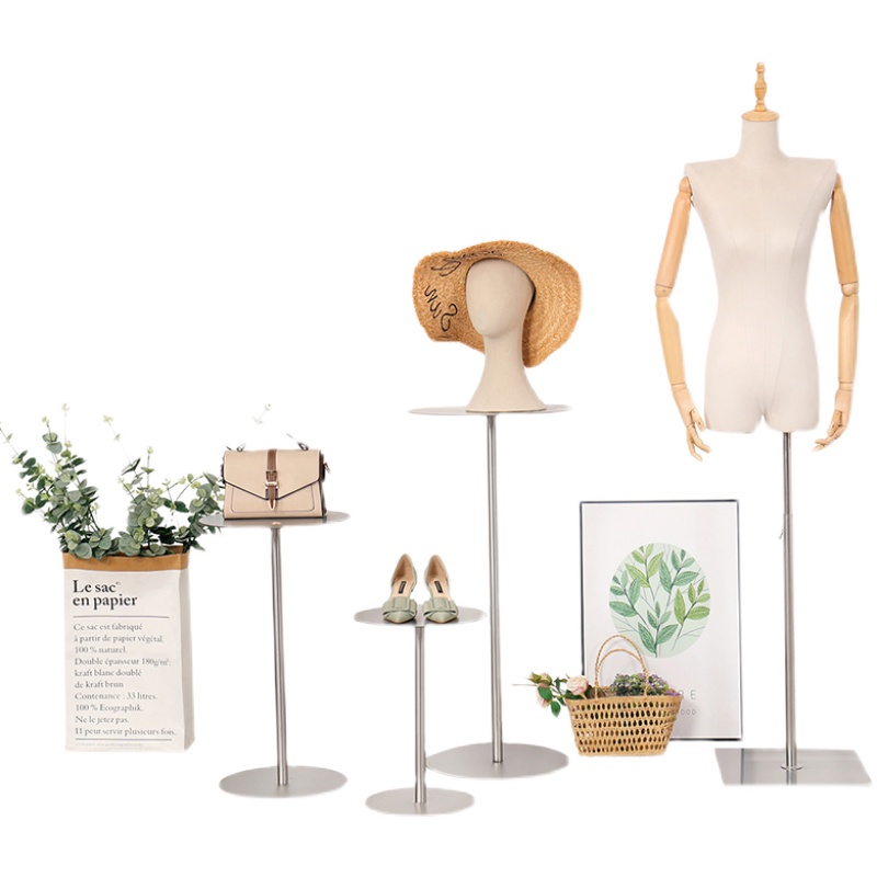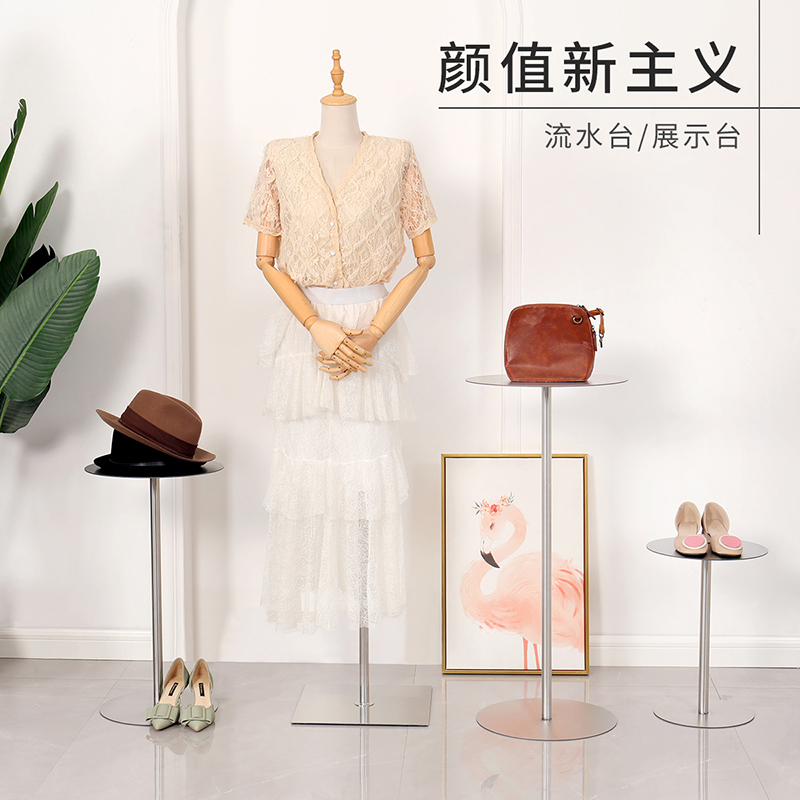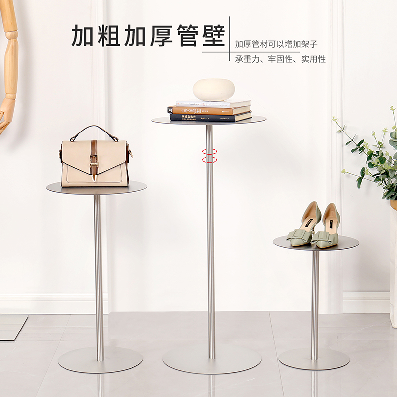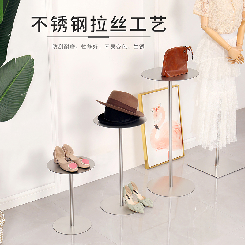 Clothing store window props display stand stainless steel silver Nakajima rack simple shoe bag rack high and low table setting