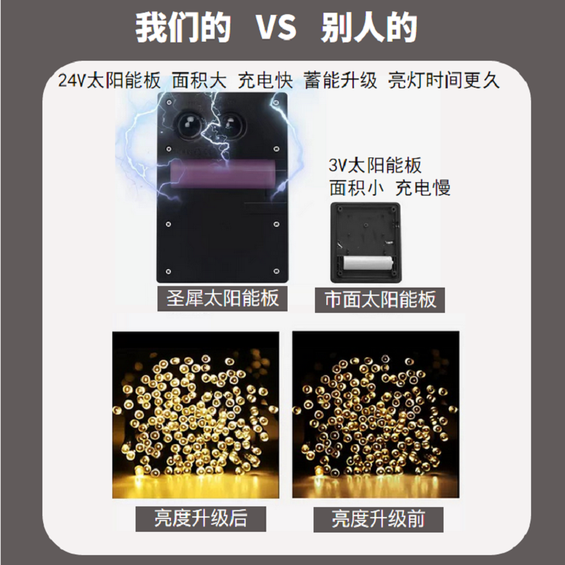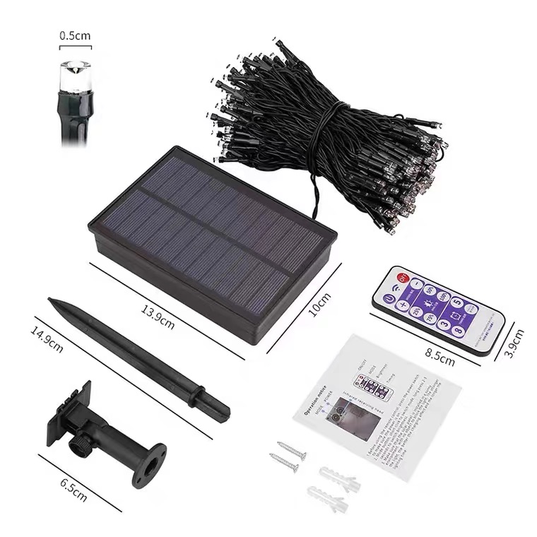 3 meters 20 lights-solar 8 modes 5 meters 50 lights-solar remote control 10 meters 100 lights-solar remote control 20 meters 200 lights-solar remote control 30 meters 300 lights