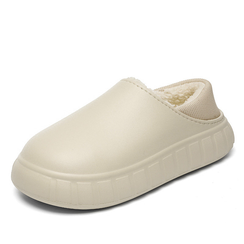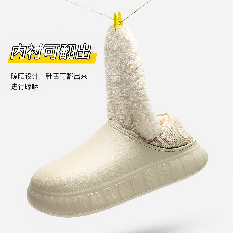 Waterproof cotton slippers women wear indoor thick bottom non-slip home cotton shoes bag heel plus velvet warm confinement slippers winter