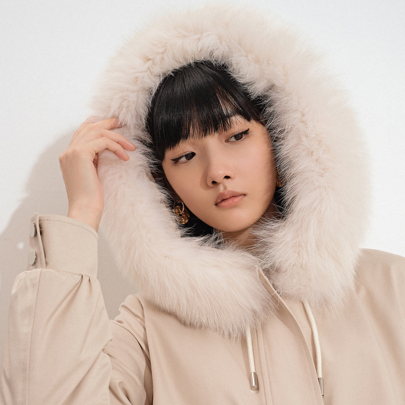 (Cold Wave) Psalm Women's Clothing 2021 Winter Fox Fur Collar Rabbit Fur Liner Fur Pie Overcome
