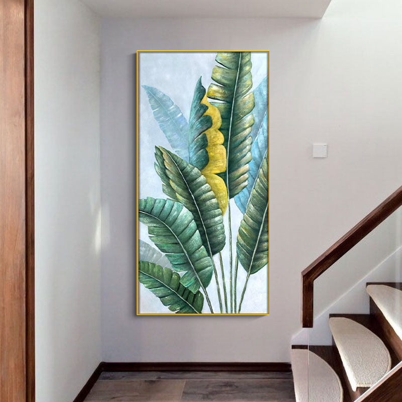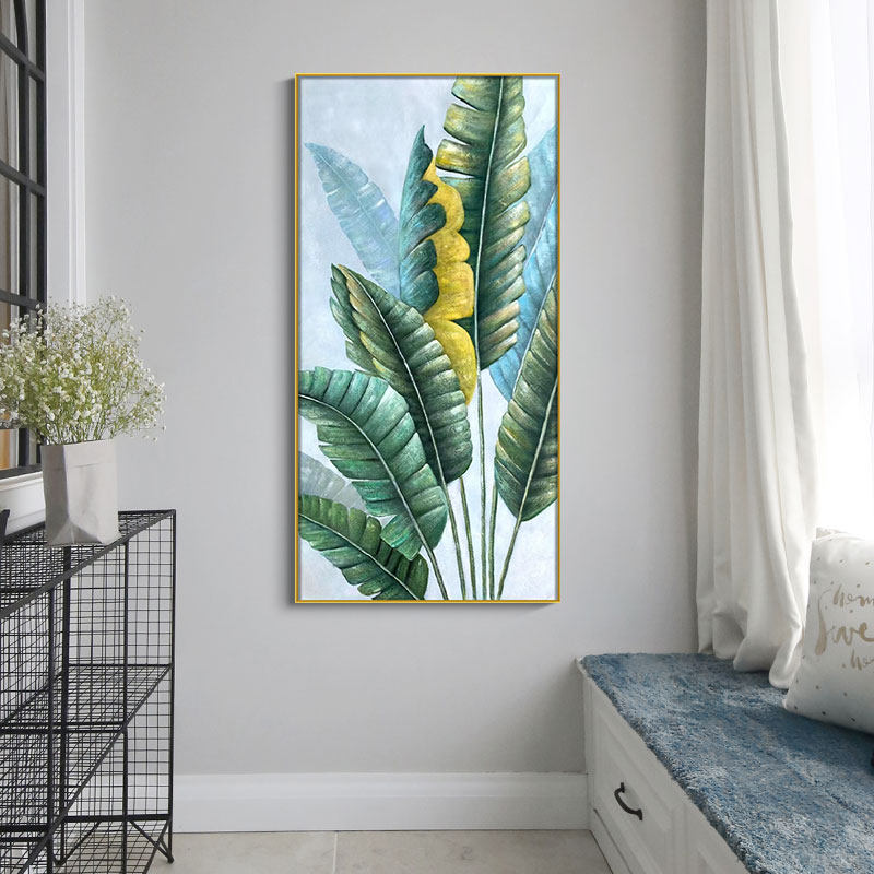 Original handpainted oil painting Hyun Guan Vertical Edition Hung Painting Corridor Over Mural Tract Minimalist Modern Decoration Painting Plantain Fan Creamin