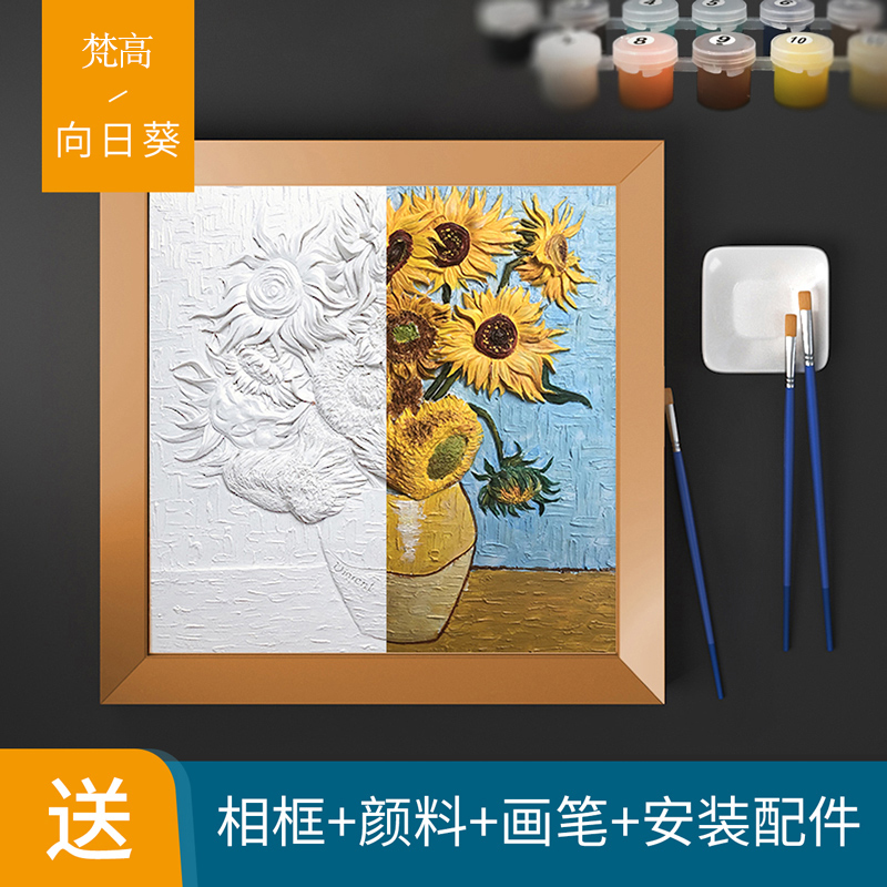 Play with Van Gogh Sunflower DIY hand painting zero base color fill relief painting digital oil painting high-end gift