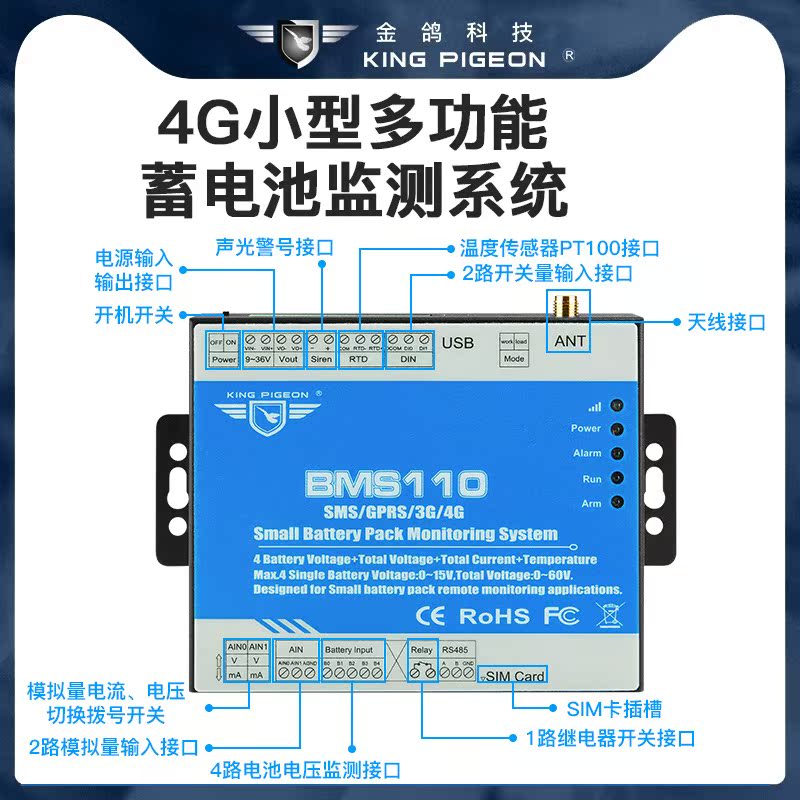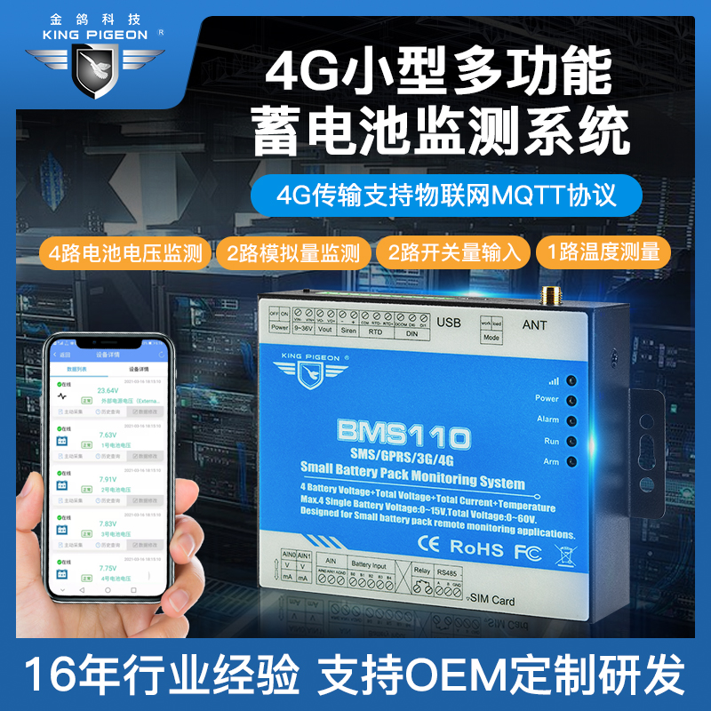 Telecom base station solar photovoltaic power generation storage battery group remote online monitoring module gold pigeon BMS110