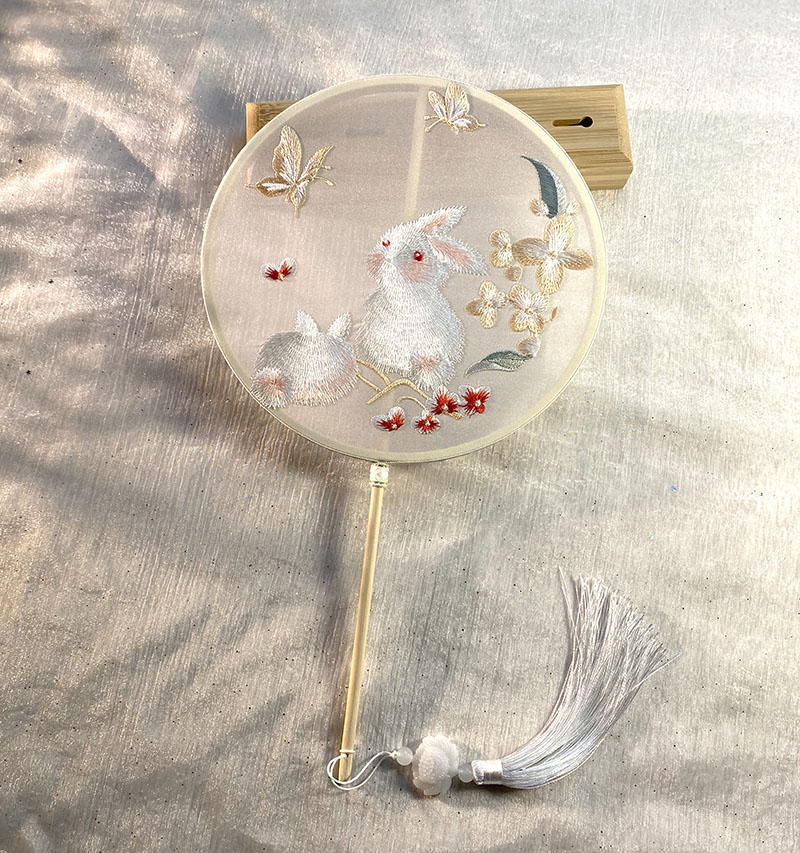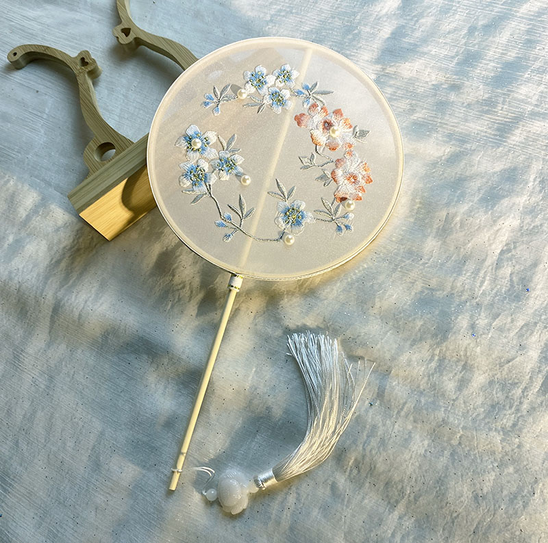 Double-sided fan ancient Chinese female long handle Suhan wearing bangown dance fan children summer round fan