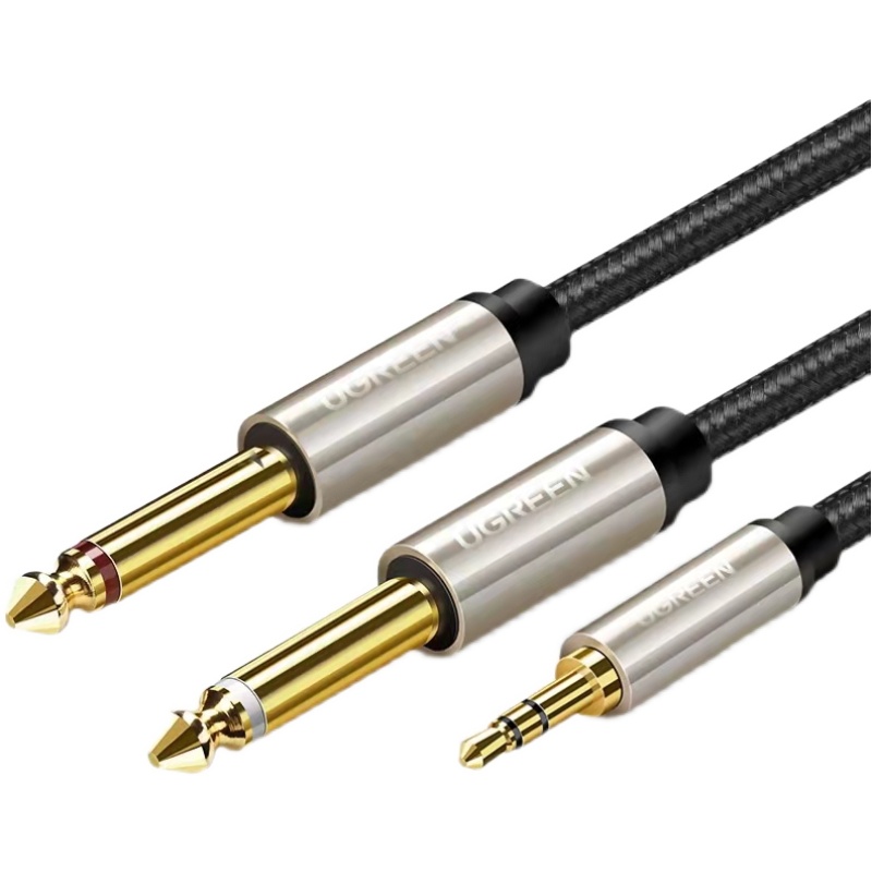 Green Union 3 5 to double 6 5 audio cable one point two 6 35mm large two-core male-to-male dual-channel computer transfer wiring