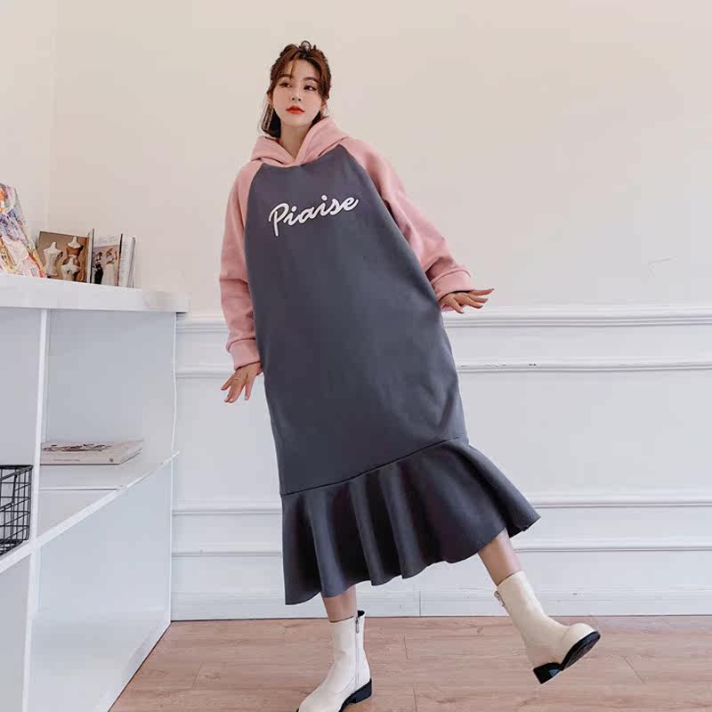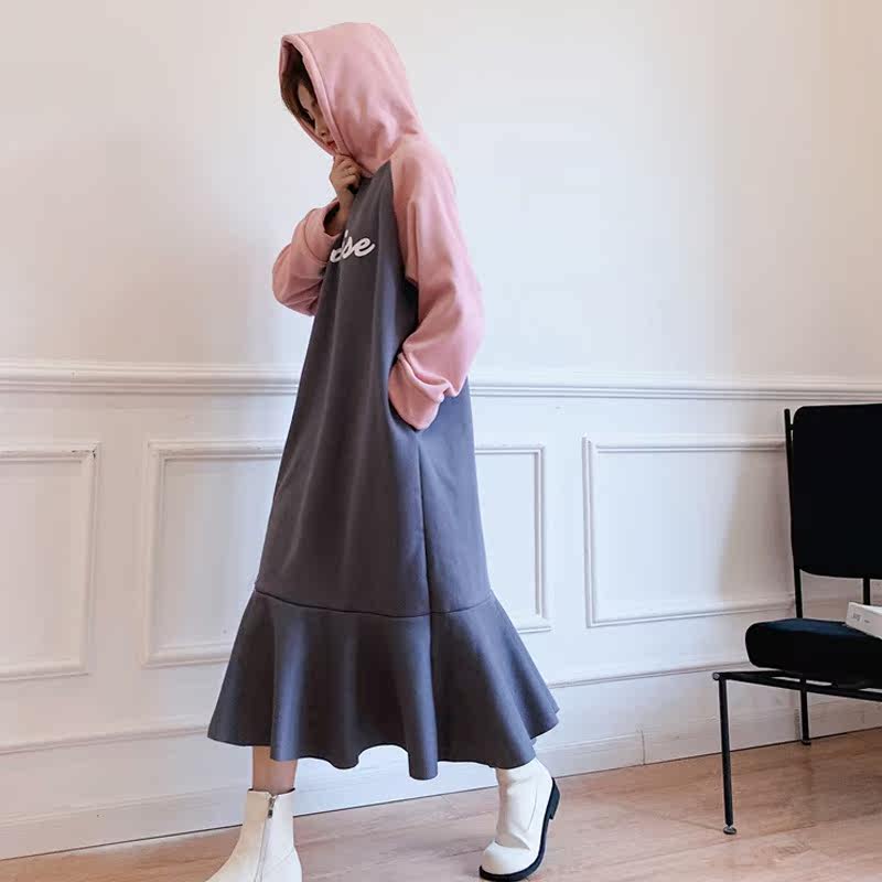 Pregnant women's autumn clothing long version 2021 new fall long sleeve blouse blouse autumn winter plus suede cap loose foreign dress