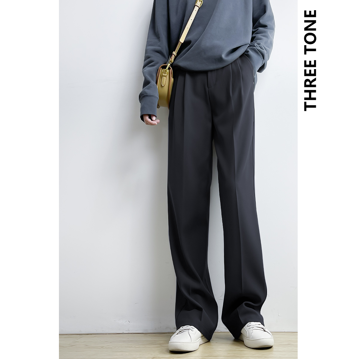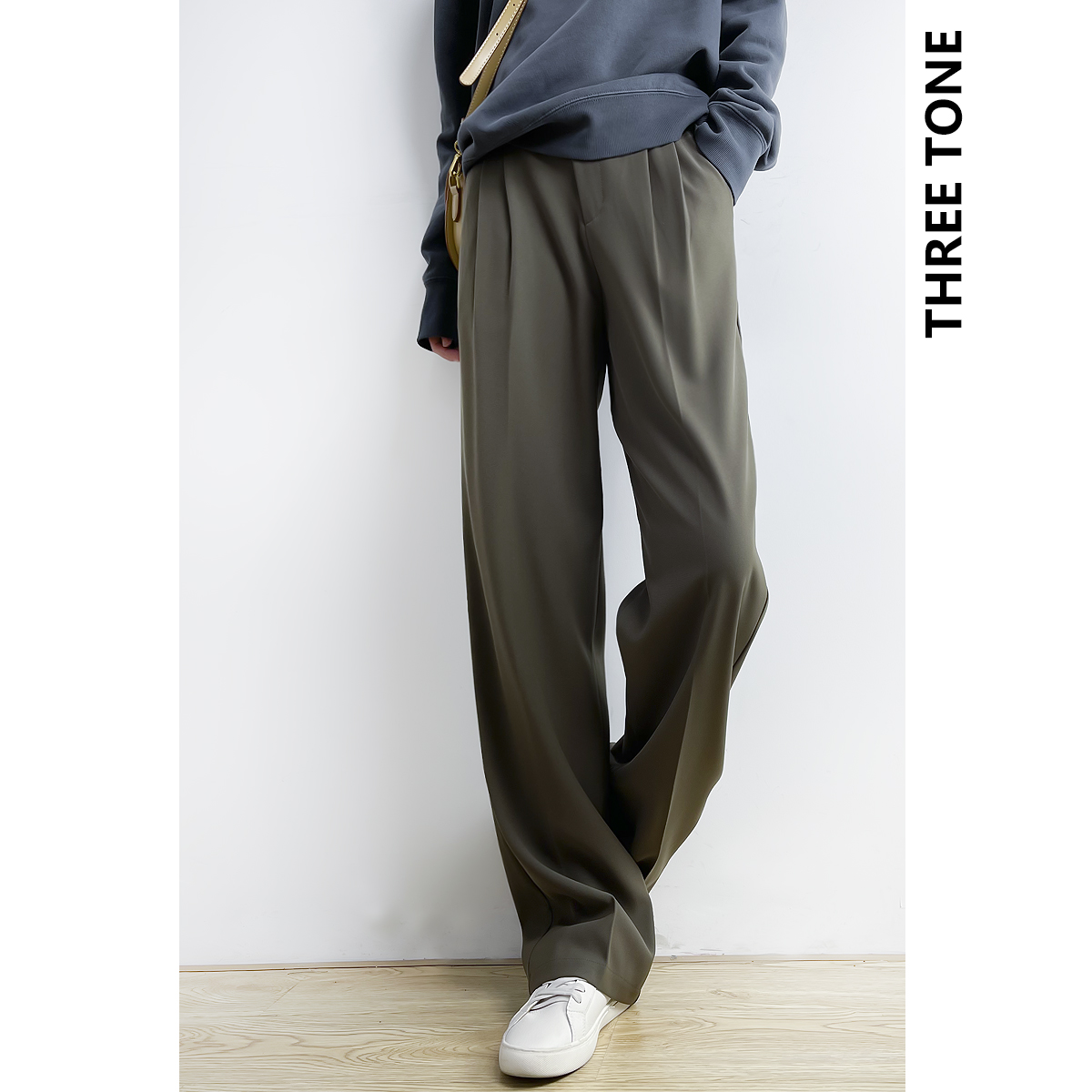 Two pieces of texture good to scream high waist straight cylinder Thin Broadlegged Pants West Dress Pants Spring Autumn Curry Pants Woman