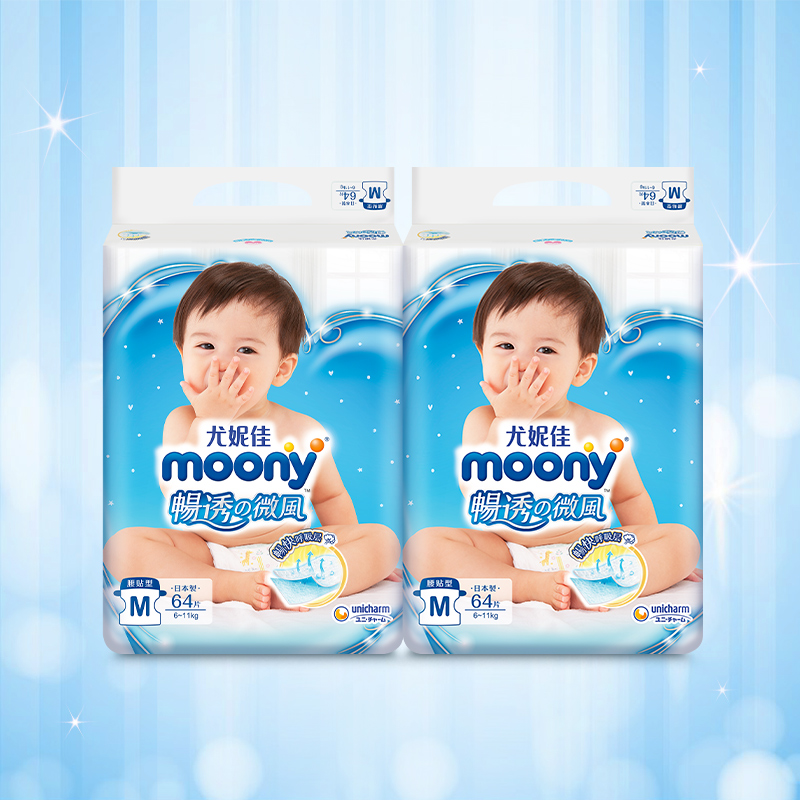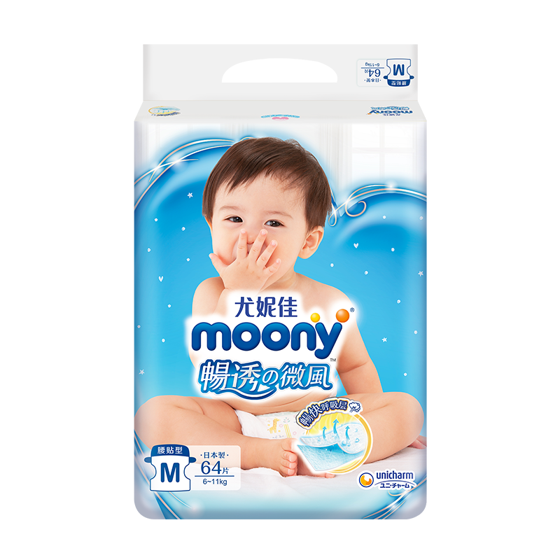 Official Younijia moony diaper M64 pieces of ultra - thin breathable male and female generic baby dry and wet