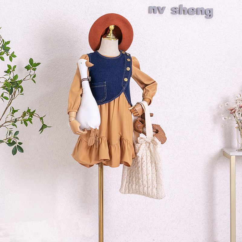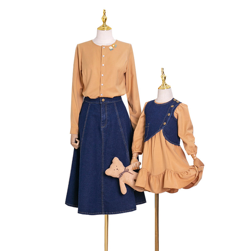 New original pro-sub-dress Long sleeves shirt blouses large size Slim Fit Mother Girl girl's fall suit Cowboy dress