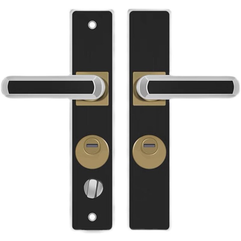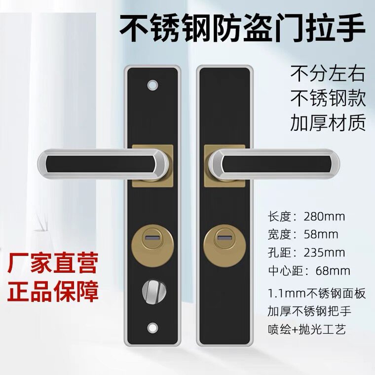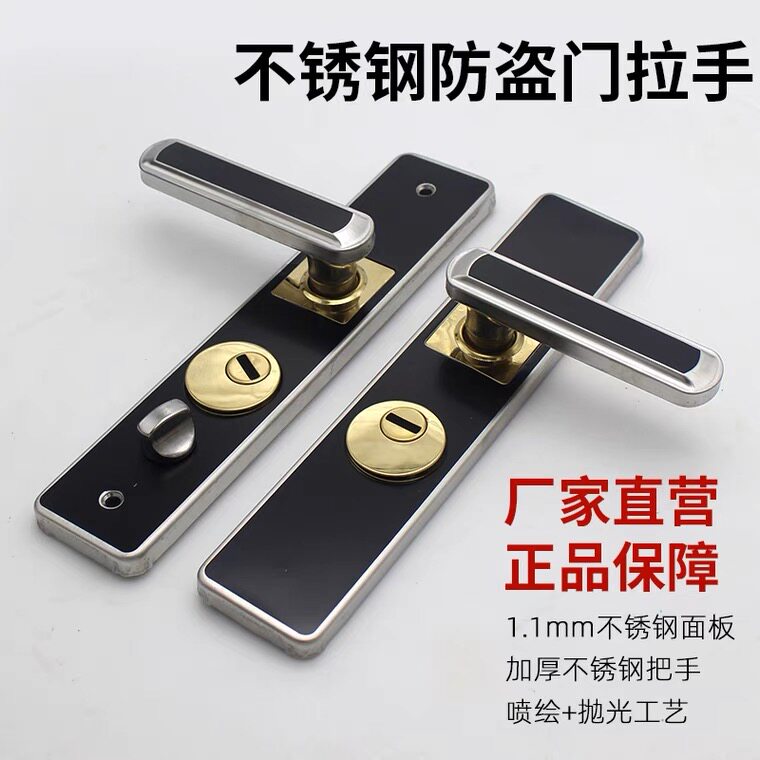 Anti-theft door door lock double door to open door black thickened panel handle stainless steel handle door lock