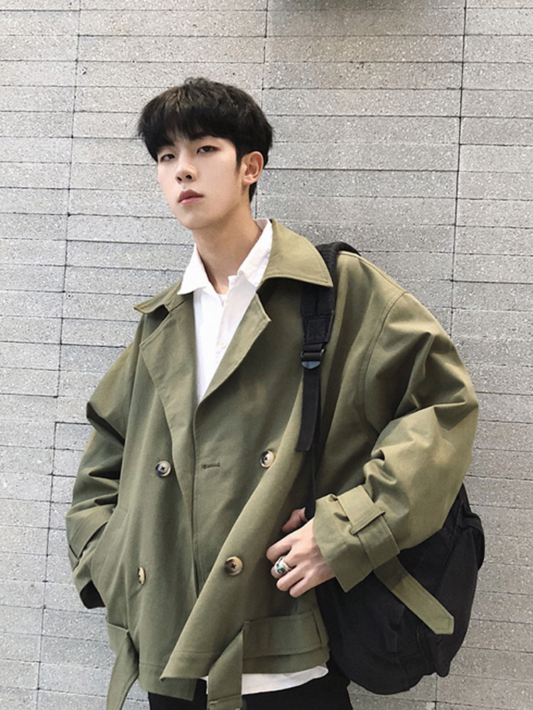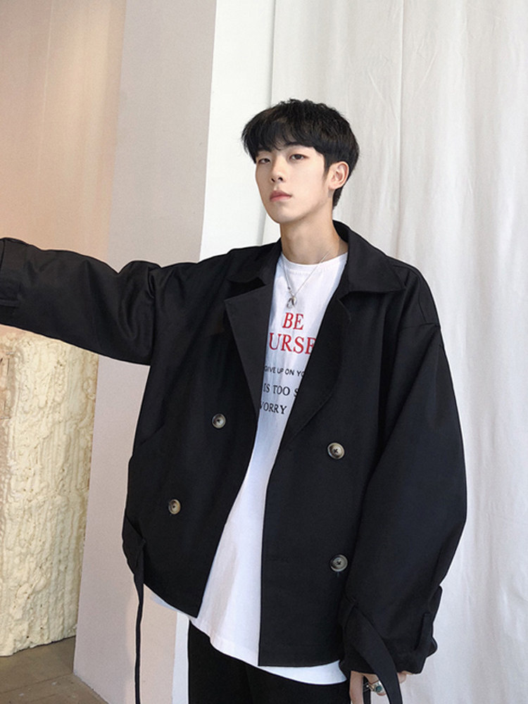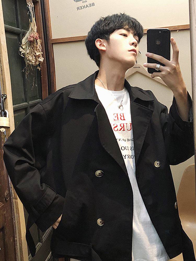 Short windbreaker men's spring and autumn 2022 new casual jacket medium coat Korean version loose couple wear lapel top