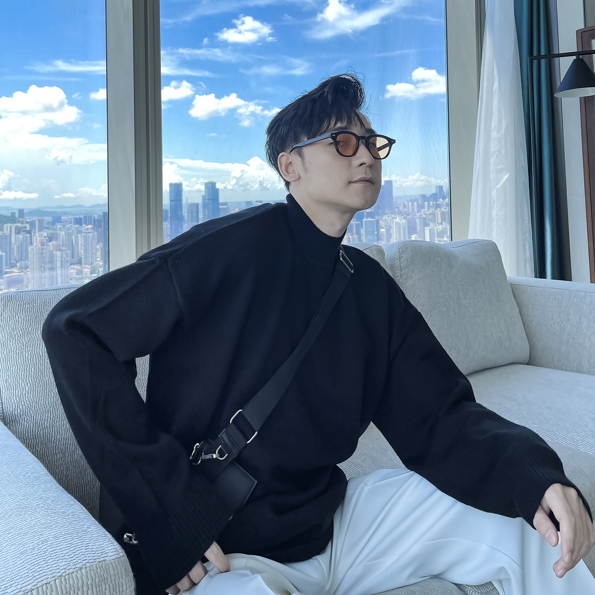 (VERA KANE) Korean ins small fresh solid color all-match casual loose long-sleeved half turtleneck sweater trendy men