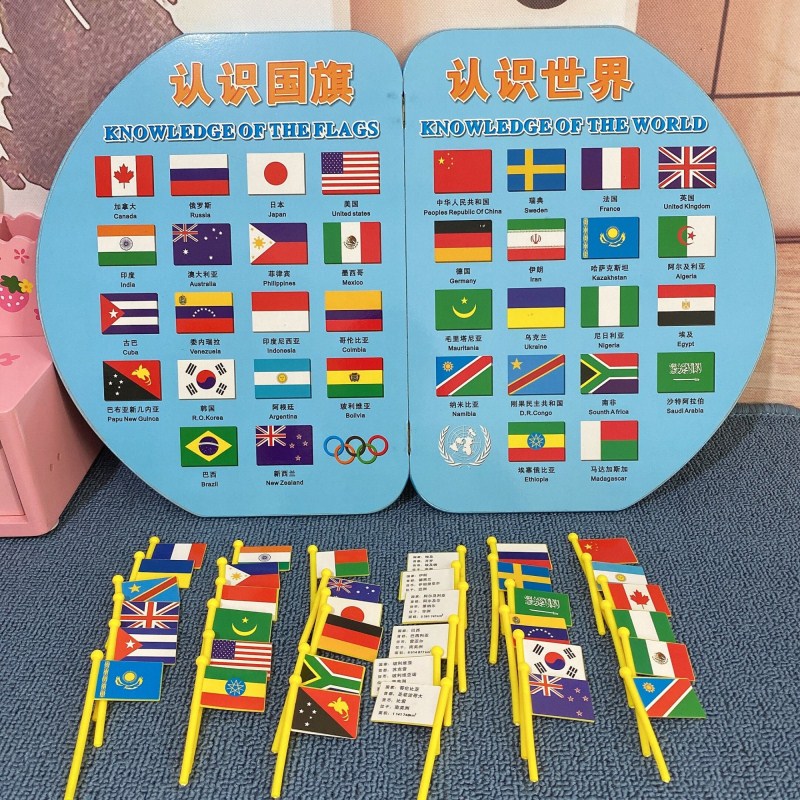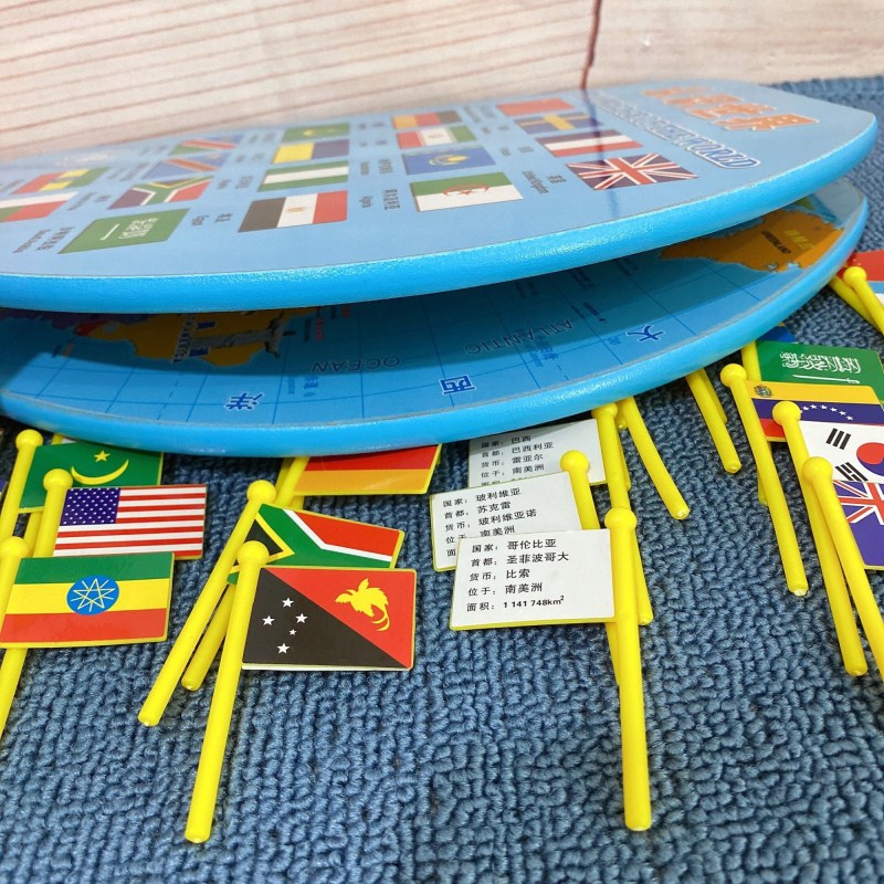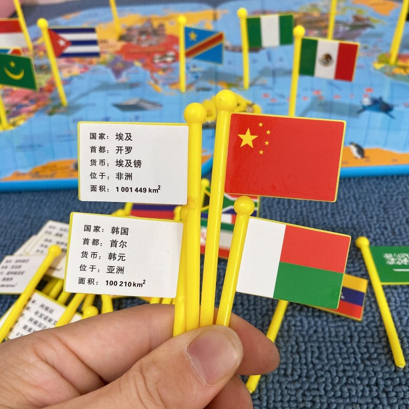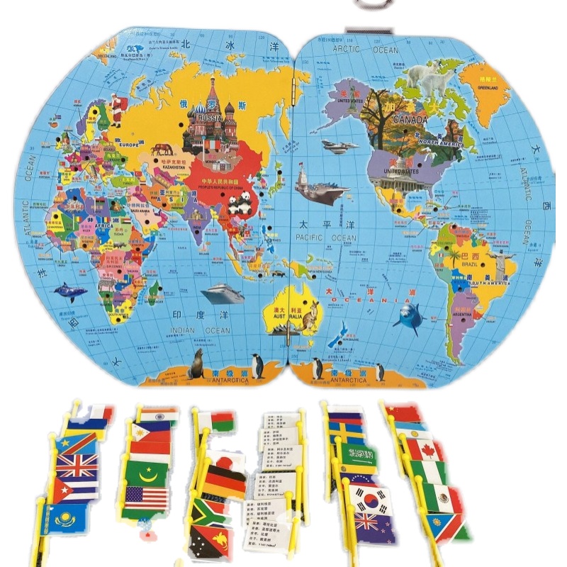 Children's world map inserts the national flag puzzle wooden early to teach Chinese geo-baby enlightenment 456-year-old puzzle toy