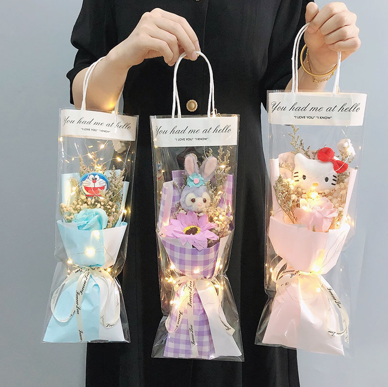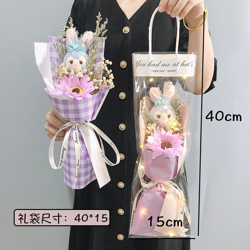 Purple plaid*tutu transparent gift bag two-color purple*tutu transparent gift bag pink KT transparent gift bag blue robot cat transparent gift bag pink Connie rabbit transparent gift bag champagne bear transparent gift bag
