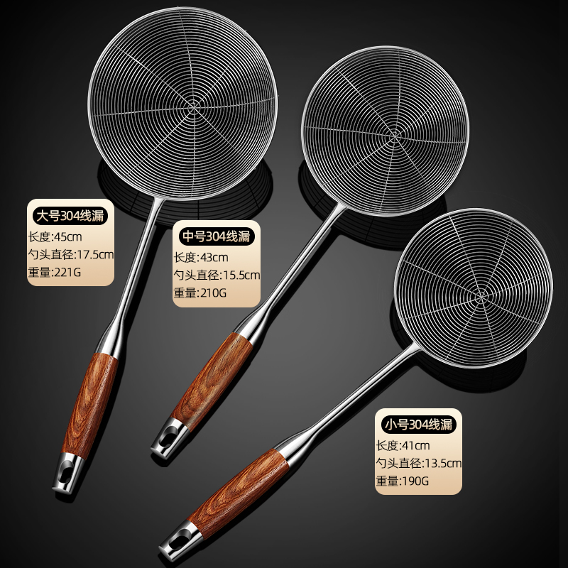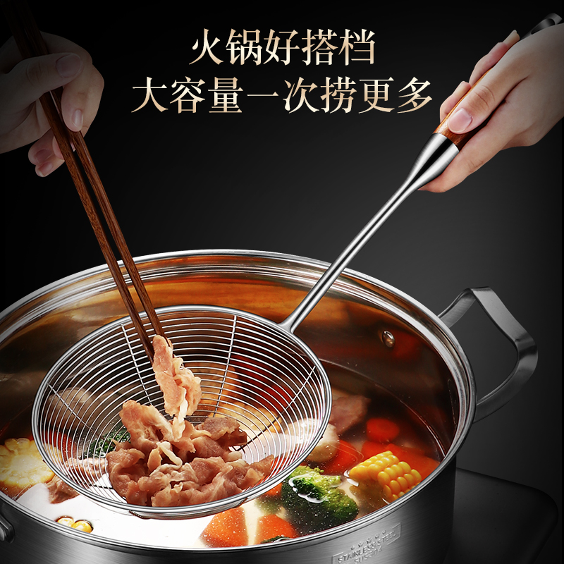 Home 304 stainless steel leaking spoon Flour Spoon Kitchen wood handle Long handle Hedge Fry Large hot pot Scoop Spoon
