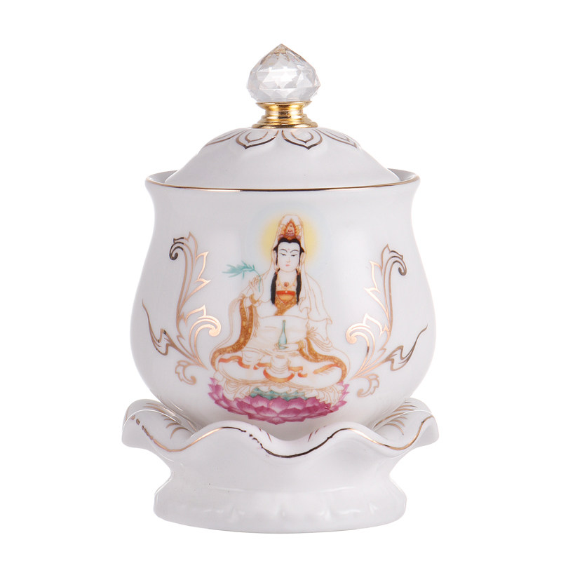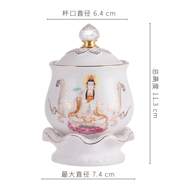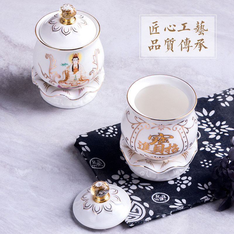 White Porcelain Holy Water Cup (Guanyin) White Porcelain Holy Water Cup (Fortune and Fortune) White Porcelain Holy Water Cup (Wind-moving Lotus) White Porcelain Holy Water Cup (Lotus Dragonfly) White Porcelain Holy Water Cup (One Lotus) Longquan Colored Water Supply Cup (Buddha