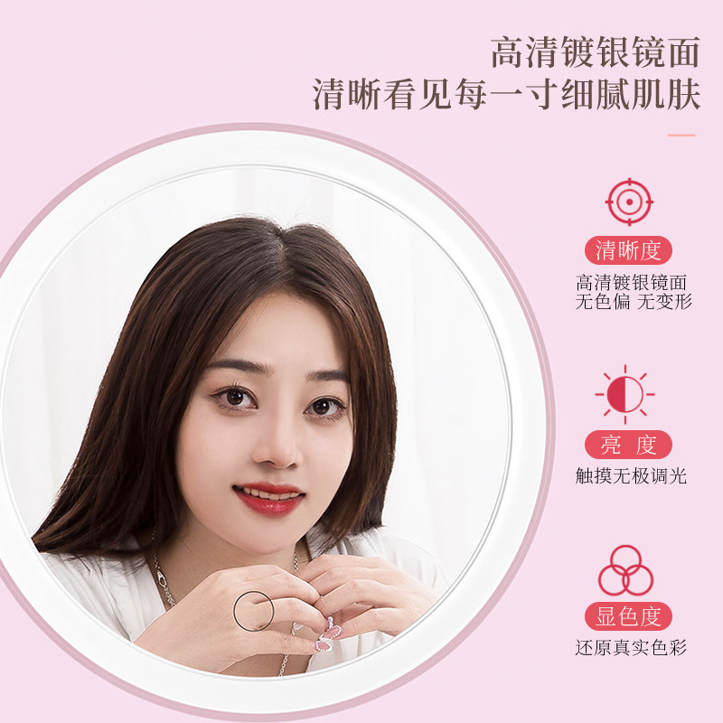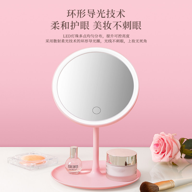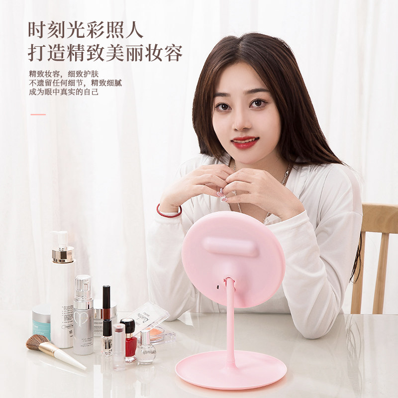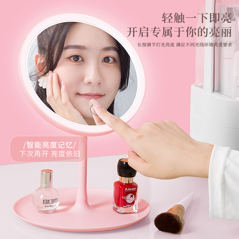 led make-up mirror with lamp desktop mesh red female tonic light small mirror ins wind dorm room table portable small dresser