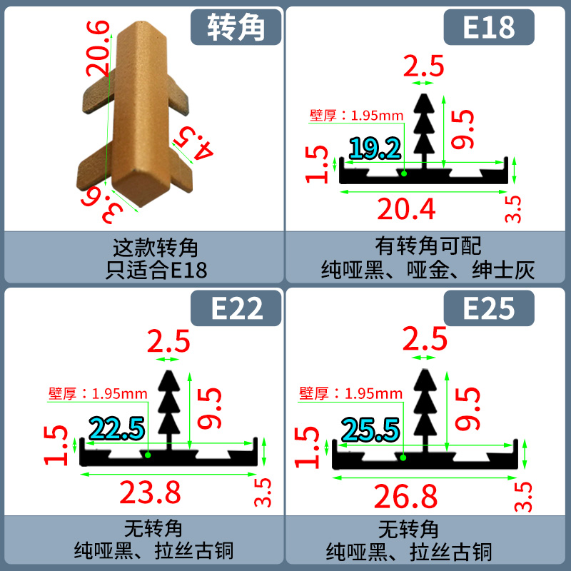E18 Corner (2 pcs) according to the purchase color of the edge E18 direct blocking plug (2 pcs) according to the purchase of the edge color, E18 pure sub-black (3 meters) E18 sub-golden (3 meters) E18 gentleman gray