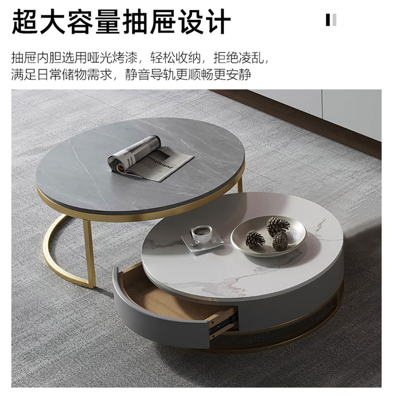 Bright surface retractable floor coffee table TV cabinet combination set light luxury rock slab living room modern minimalist Nordic style platform