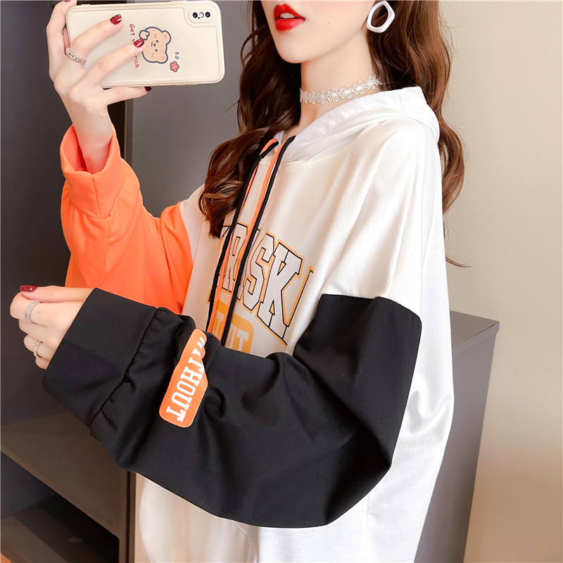 2021 autumn surrogacy Bottling Street Korean version Loose Spelling Design Sensation Net Red Sweatshirt Casual