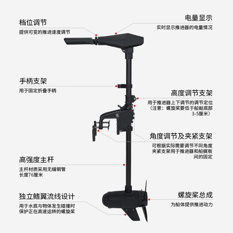 Sanlaixi brushless outboard machine high-power thruster assault boat electric hanging oar machine rubber boat motor propeller