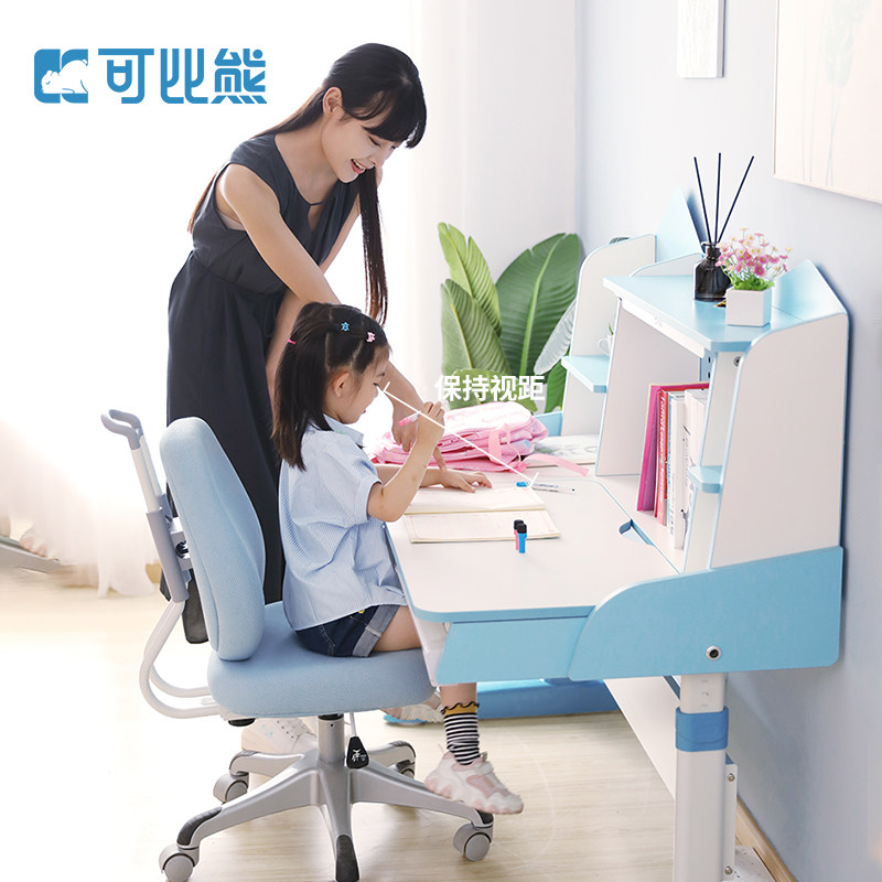 Comparable Bear Children Study Table Solid Wood Book Table And Chairs Elementary School Kids Book Table And Chairs Combination Suit Lifting Class Table And Chairs