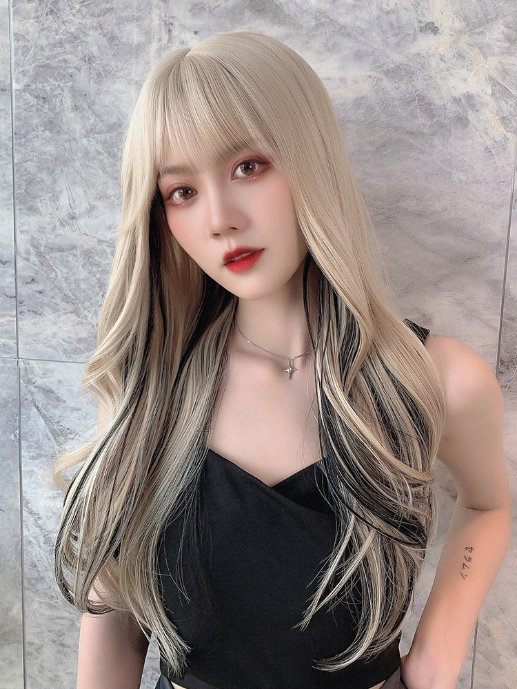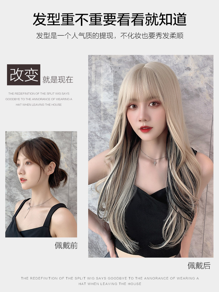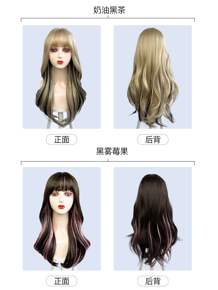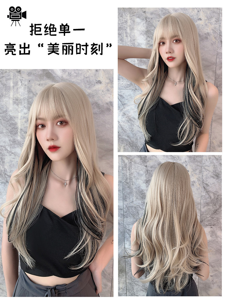 Wig female long hair full head cover cream highlight black brown long curly hair net red realistic micro-curly ear hanging dye wig cover - Taobao