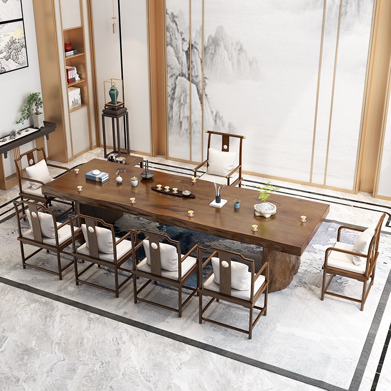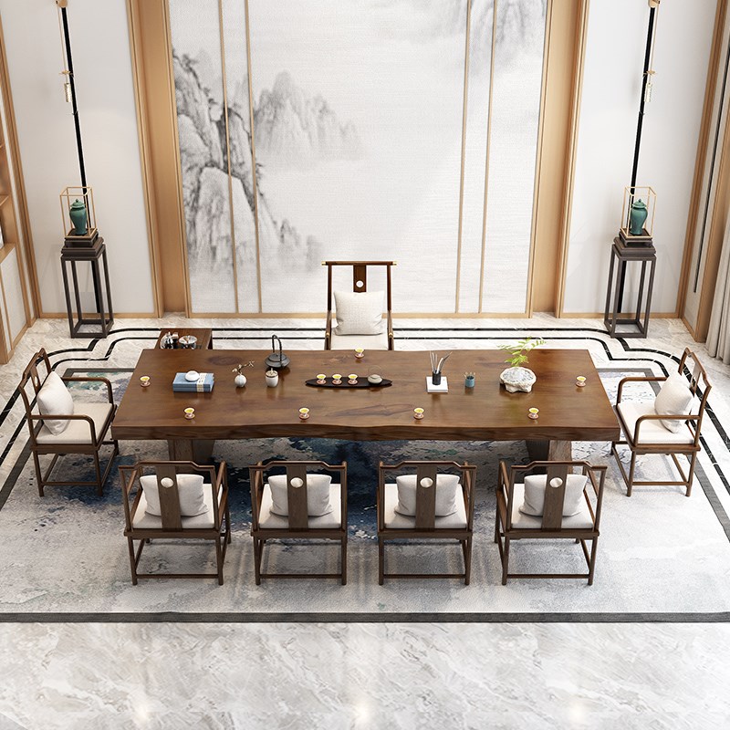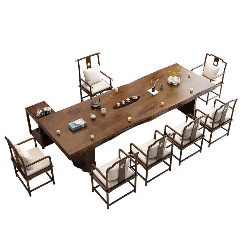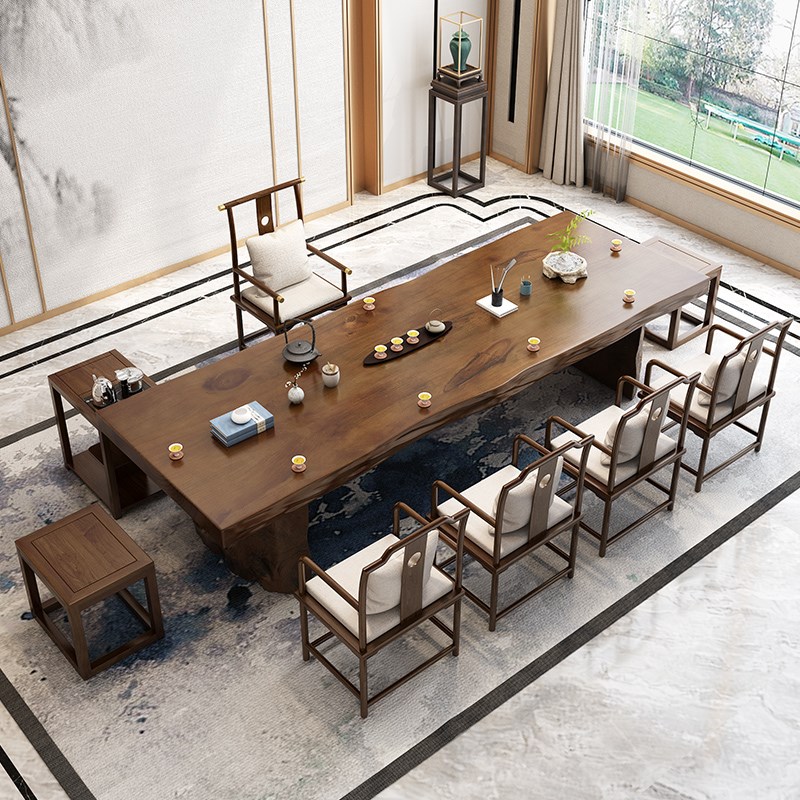 Solid wood tea table and chair combination tea table new Chinese Zen large plate tea table log office coffee table kung fu tea table