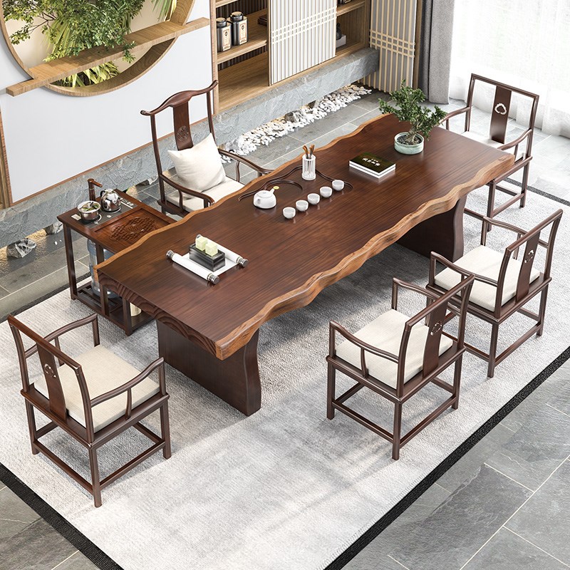 Solid wood tea table and chair combination new Chinese-style living room home tea table office kung fu modern Zen large plate tea table