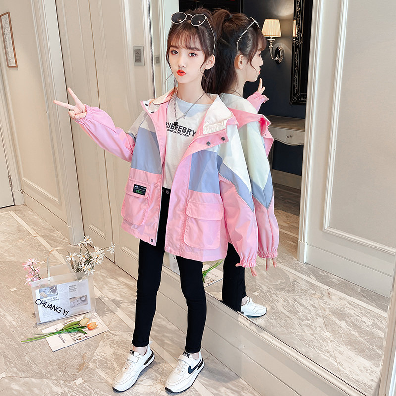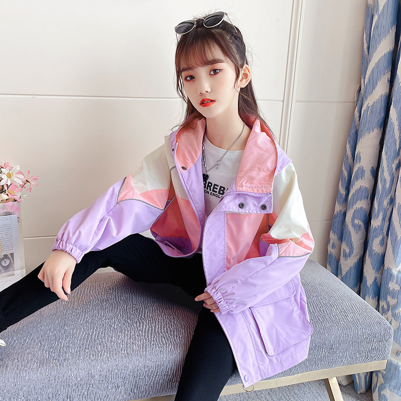 Girls' coats 2021 new autumn clothing explosion style girls' clothing medium and big children's jackets female treasure spring and autumn mid-length windbreaker