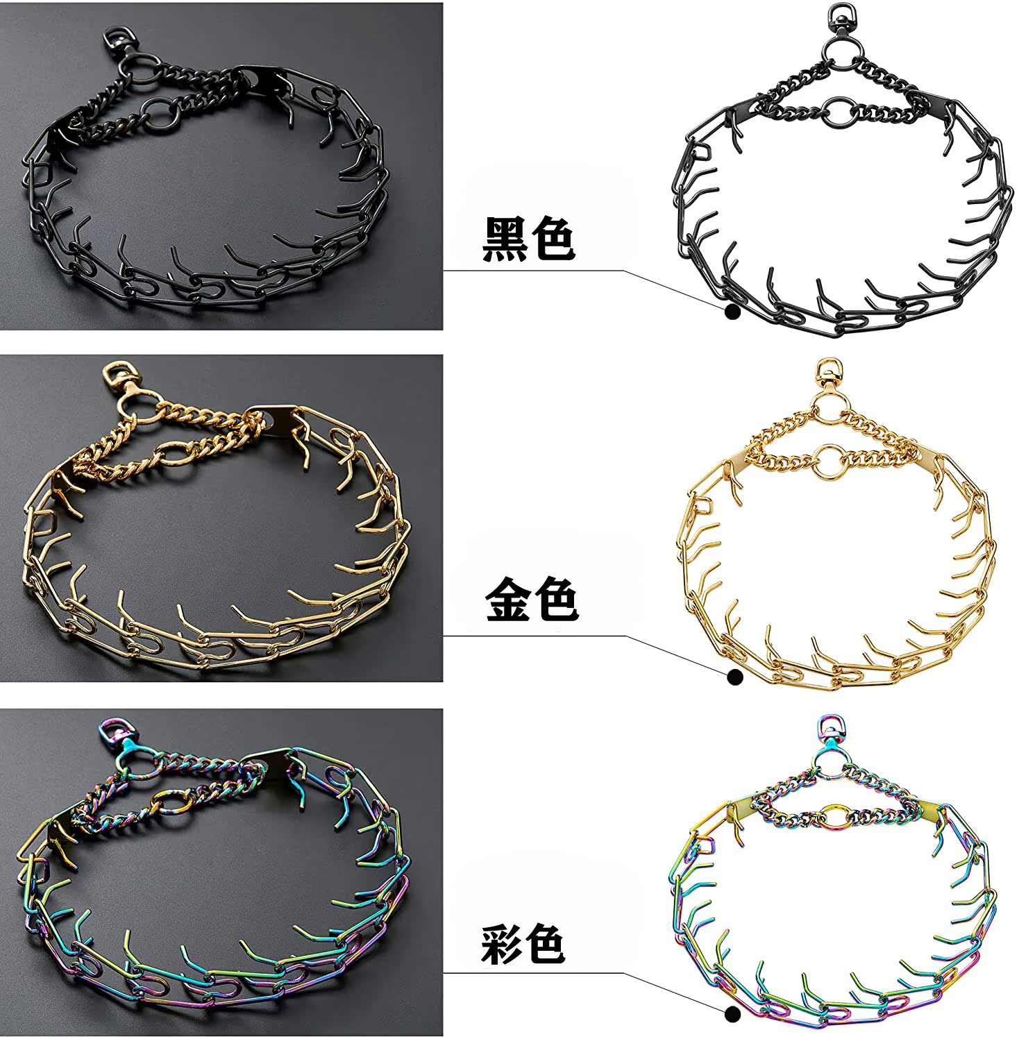 Dog walking explosion-proof sprint nail chain collar medium and large dog stimulation dog chain adjustable size neck collar training dog traction chain