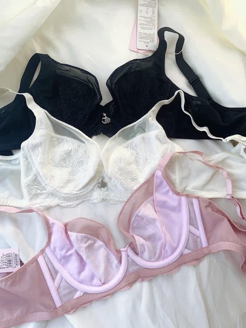 Thin, cool and breathable ~ only 90C sexy black women's summer ultra-thin cup soft steel ring big chest showing small push-up bra