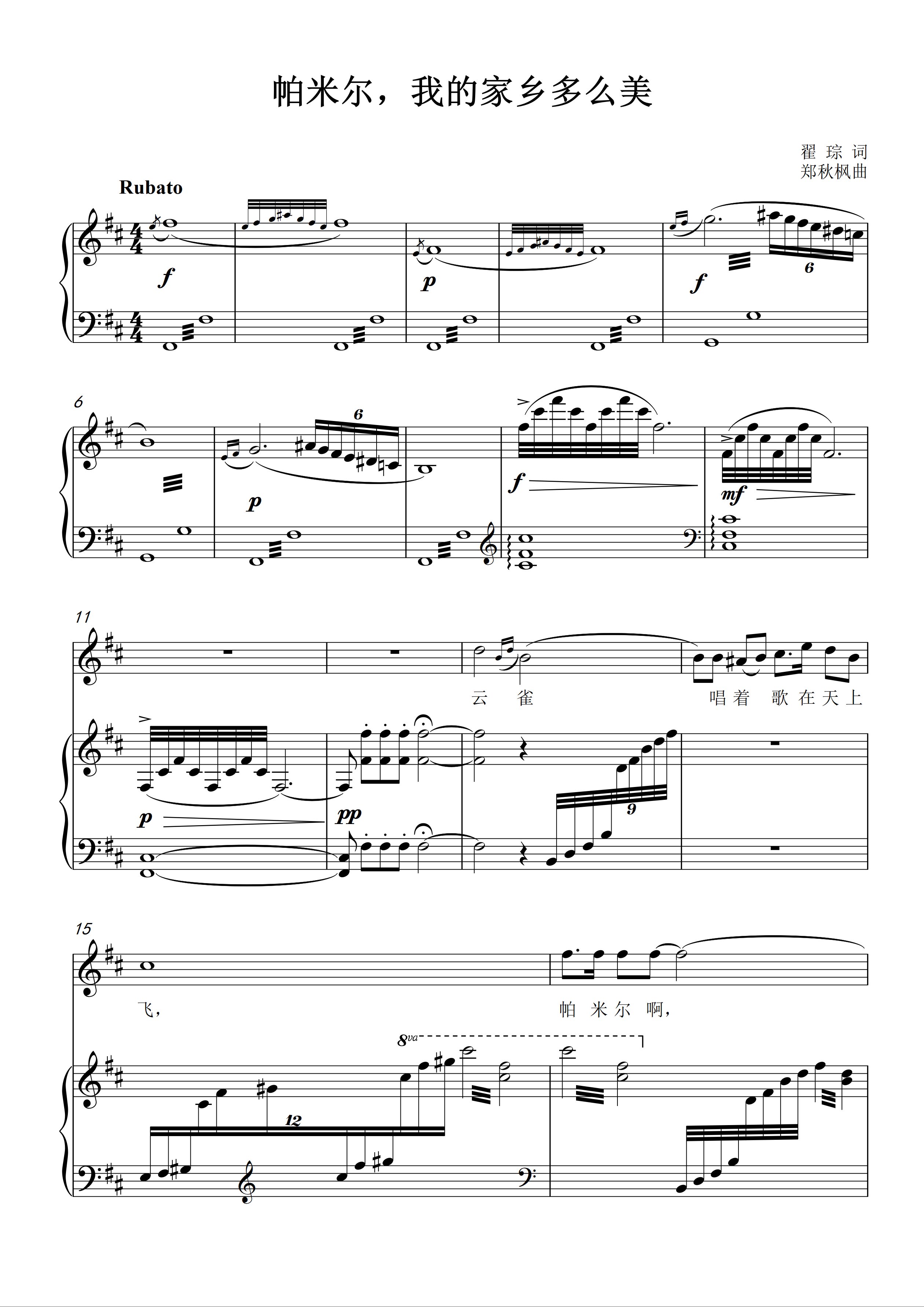 Pamir My hometown How beautiful F E D C B Acoustic Piano Accompaniment Five Lines Genealogy