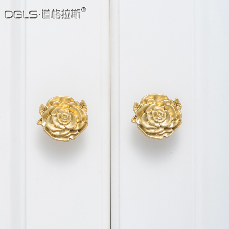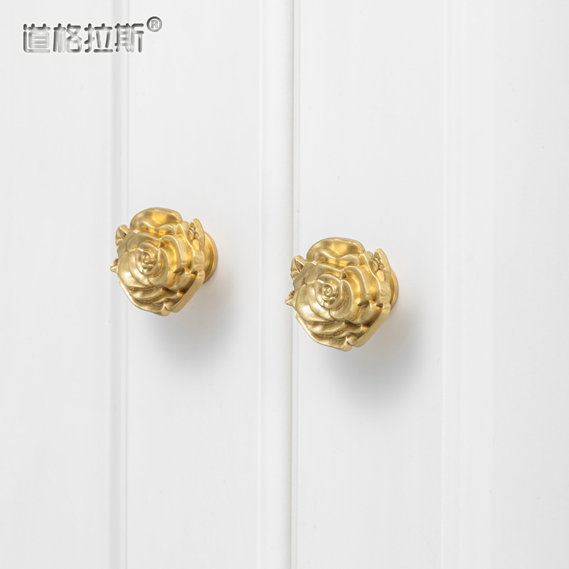 French European American Brass Handle Cabinet Door Cabinet Wardrobe Handle Golden Light Luxury New Chinese Style Pure Copper Handle