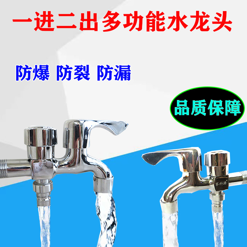 4 minutes quick faucet multi - functional dual washing machine tap double head one in two angle valve household