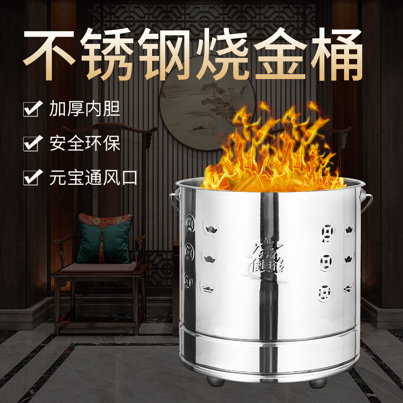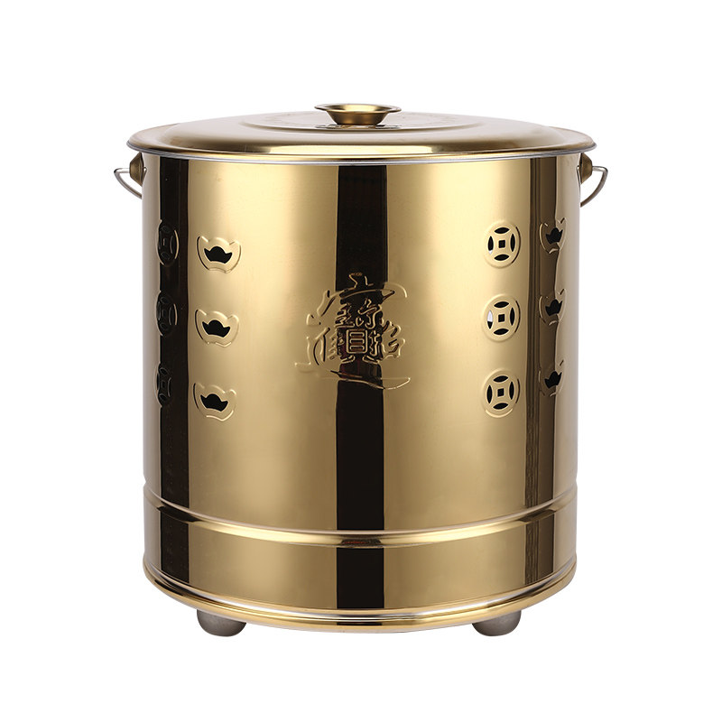 Stainless Steel Paper Barrel Gold Barrel Burning Barrel Household Worship Yuanbao Furnace Treasure Barrel Burning Barrel Burning Furnace Paper Money Gold