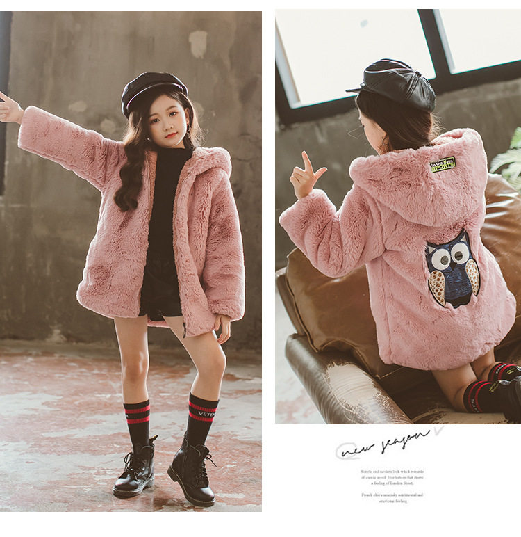 Korean girls autumn and winter 2021 new velvet padded jacket middle and big children's children's clothing mid-length fur coat trendy