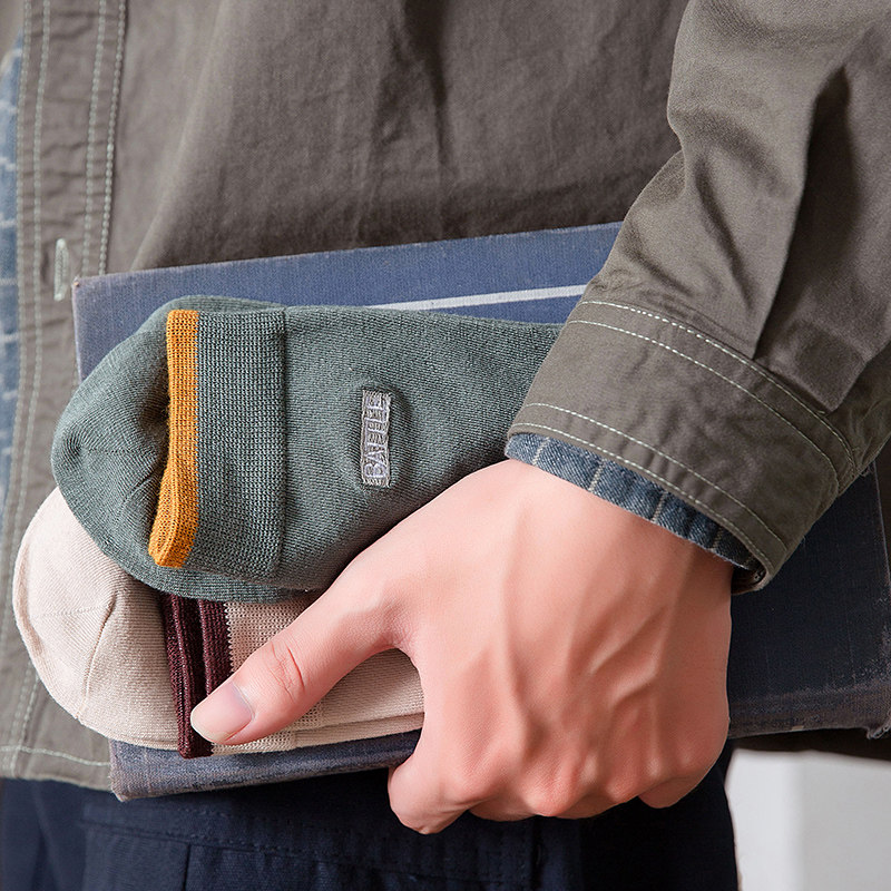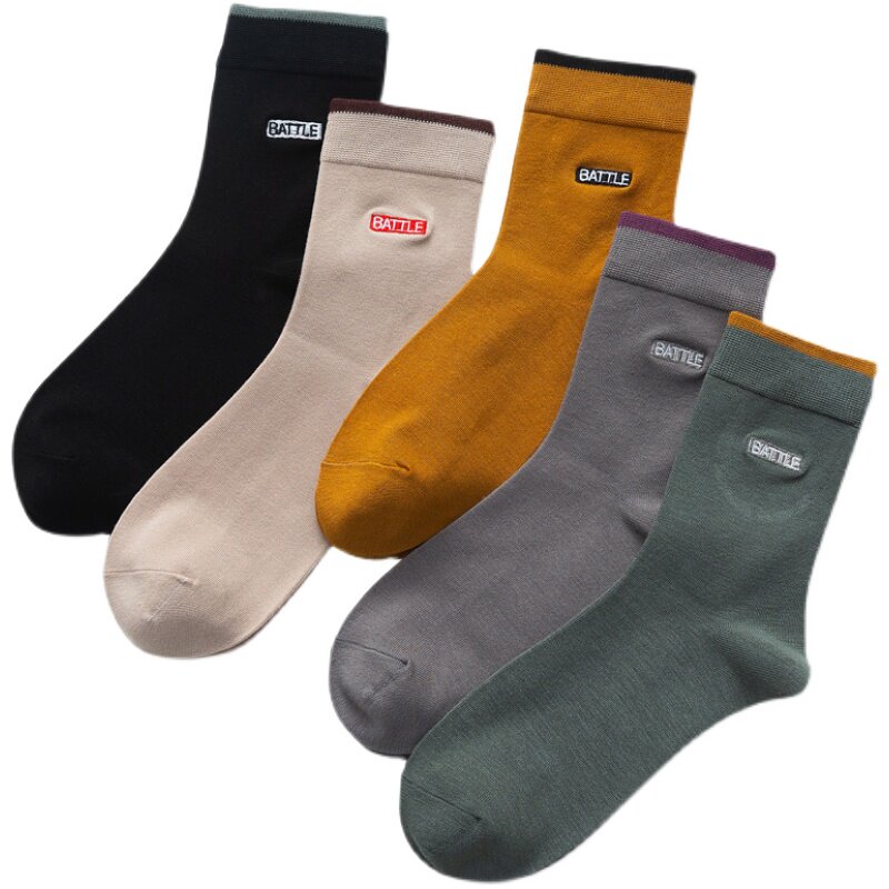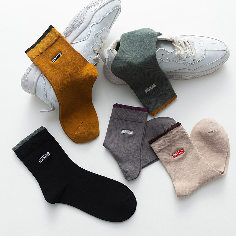 Pure cotton mid-tube socks autumn and winter cotton deodorant sweat-absorbing breathable solid color socks men's four seasons sweat-absorbing stockings embroidery