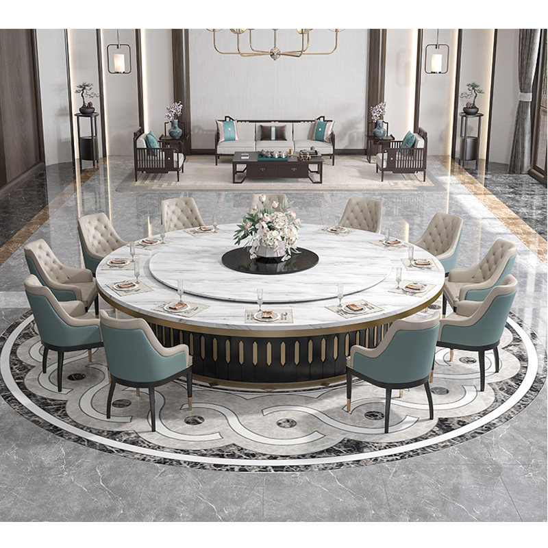 Simple and modern light luxury hotel electric big round table club dining room box marble electric hot pot round table customization
